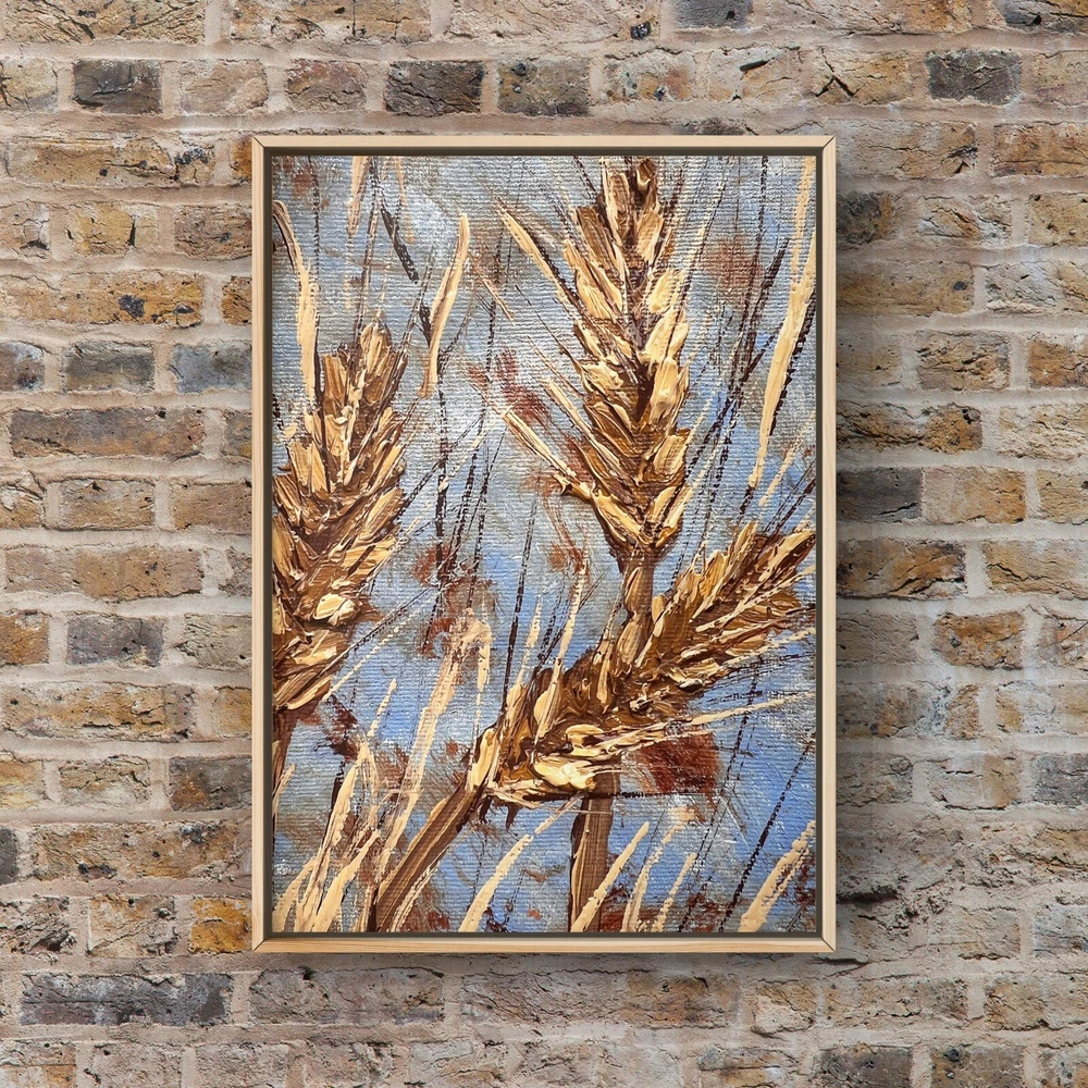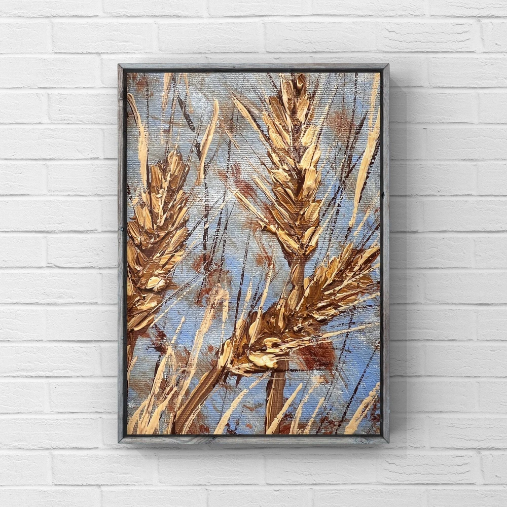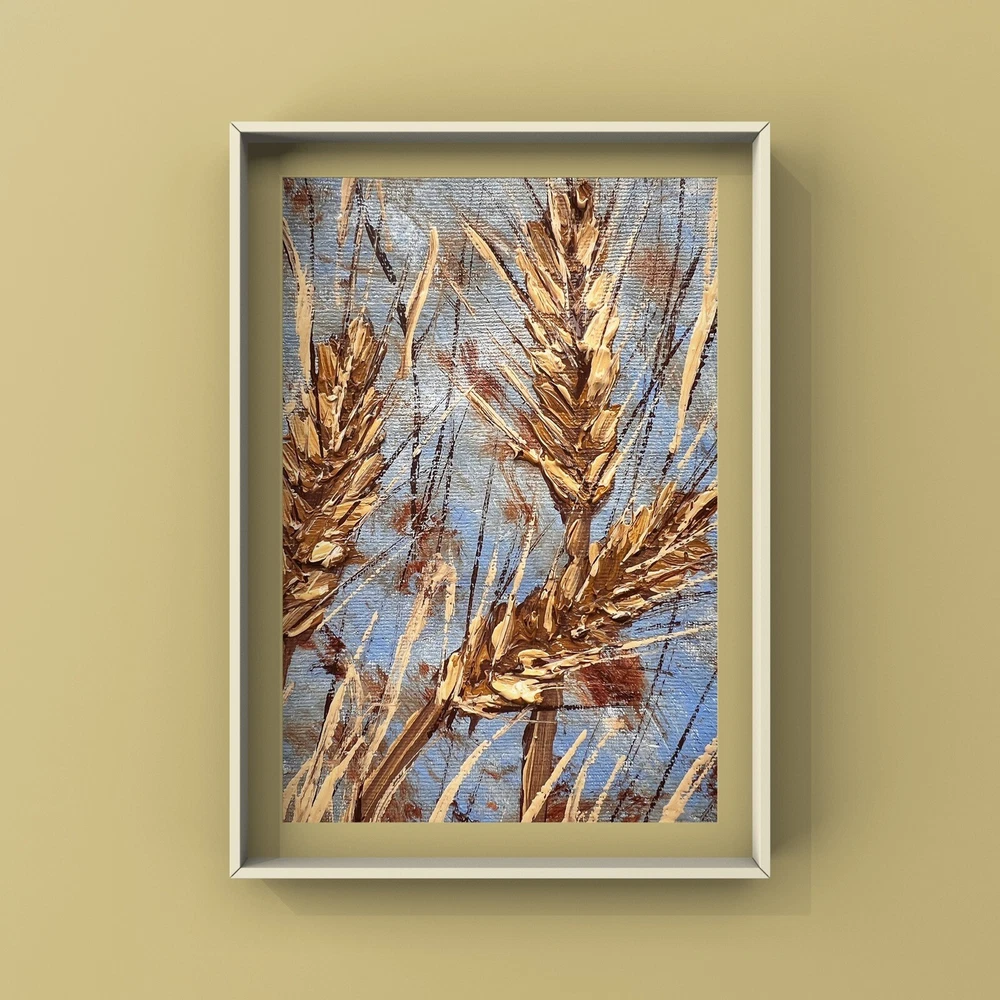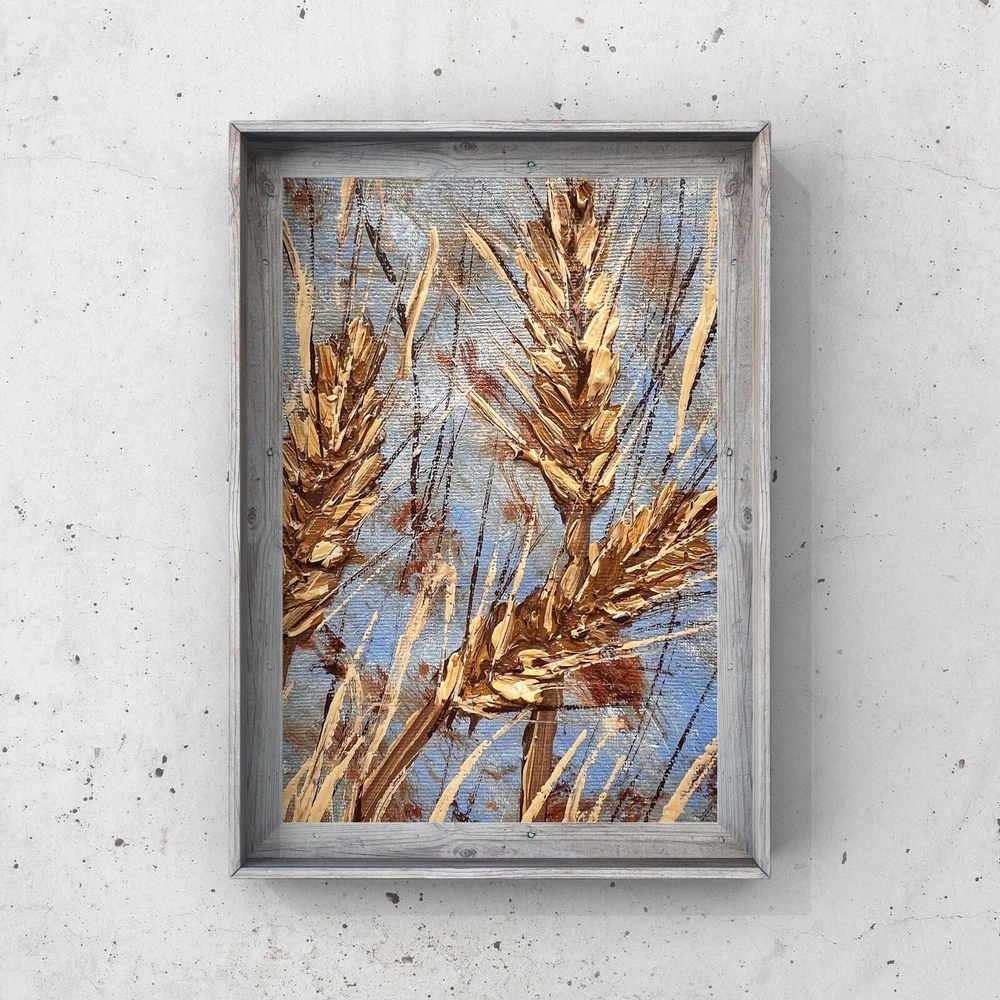 Wheat stalks oil painting on canvas farming agriculture art miniature artwork