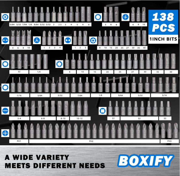 Gunsmith Screwdriver Set Wheeler Gunsmithing Firearm Tools Kit 208 Bits Pro NEW 【208-BIT SET】: Includes high-quality bits (Phillips, slotted, square, hex, Pozidrive, Tri-wing, Torx, Phillips, Tamper-Proof Torx), extension bit holders, quick-release bits, and other specialty bits for everyday use. 【DURABLE MATERIAL】: This security bit set is made of chrome vanadium (CR-V) steel and features a sandblasted finish for increased corrosion resistance. It is tough and durable, making it difficult to break. 【EASY TO FIND】: The markings on each size and the case make it easy to identify and organize. The case with labeled slots keeps the bits organized and is easy to carry and store. 【QUICK-RELEASE EXTENSION BIT】: The quick-release magnetic extension bit holder can be used for electric screwdrivers, screwdrivers, hand drills, and pneumatic tools. 【MEETS DAILY NEEDS】: The professional screwdriver bit set can be used to meet a variety of daily maintenance and installation needs. 98 ✖ 1 INCH POWER BITS: P1(3), P2(22), P3(3), SL3-4(3), SL6-8(3), SL8-10(3), SL10-12(3), SQ1(2), SQ2(6), SQ3(2), Hex 1/16(3), Hex 5/64(3), Hex 3/32(3), Hex 1/8(3), Hex 9/64(3), Hex 7/32(3), Hex 1/4(3), Hex 3/16(3), Hex 5/32(3), Hex 7/64(3), T8(2), T10(2), T15(2), T20(2), T25(2), T27(2), T30(2), T35(2), T40(2) 23 ✖ ANTI-TAMPING SECURITY BITS: H5/64, H3/32, H7/64, H1/8, H9/64, H5/32 (2), H2, H2.5, H3, H4, H5, H6 (2), T8, T15, T20, T25, T27, T30, T35, T40 17 ✖ SECURITY BITS: Wrench: 4, 6, 8, 10; Tri-Wing: 1, 2, 3, 4; Torq: 6, 8, 10; Clutch: 1, 2, 3; Slot: 5, 6, 8 29 ✖ 2-INCH POWER BITS: P1 (3), P2 (5), P3 (3), SL 6-8 (1), SL 8-10 (4), SL 10-12 (1), SQ1 (2), SQ2 (4), SQ3 (2), Hex 5/32 (2), Hex 7/64 (2) 18 ✖ 3-INCH POWER BITS: P1 (2), P2 (4), P3 (2), SL 6-8 (1), SL 8-10 (2), SL 10-12 (1), SQ1 (2), SQ2 (2), SQ3 (2), Hex 5/32 (1), Hex 7/64 (1) 20 ✖ NUT DRIVERS: 3/16 (2), 7/32 (1), 1/4 (1), 9/32 (1), 5/16 (1), 11/32 (1), 3/8 (1), 7/16 (1), 1/2 (1), 5 mm (12), 6 mm (1), 7 mm (1), 8 mm (1), 9 mm (1), 10 mm (1), 11 mm (1), 12 mm (1), 13 mm (1) 1 ✖ ADAPTER: 1 in. bit adapter 2 ✖ COLLETS: 1/4 in. bit holder, 1/4 in. quick-change bit holder. SHIPPING: We offer FREE shipping on all orders! We ship within Three business days of payment, usually sooner. We use a selection of shipping services such as UPS, FedEx, USPS etc. We only ship to the lower 48 states, no APO/FPO addresses or PO Boxes allowed. Local pickups and combined shipping options are not provided at this time. PAYMENT: We accept payment by any of the following methods: PayPal Please pay as soon as possible after winning an auction, as that will allow us to post your item to you sooner! FEEDBACK: Customer satisfaction is very important to us. If you have any problem with your order, please contact us and we will do our best to make you satisfied. Thank you for shopping with us!