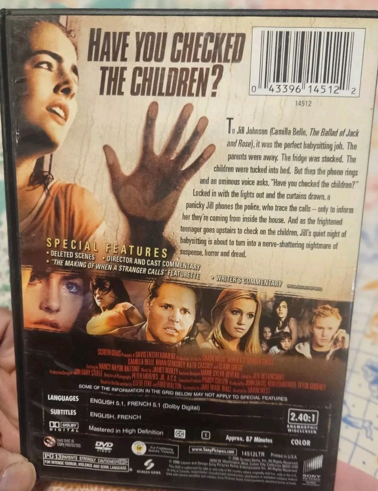 Get ready for a thrilling experience with "When a Stranger Calls" on DVD. This estate item is in great shape and comes in its original tall/DVD case. The movie features Camilla Belle and is directed by Simon West. With a PG-13 rating, this horror/suspense movie is perfect for those who love a good scare. The DVD includes special features such as commentary, behind the scenes featurette, deleted scenes, and more. The movie is in English and French with a release year of 2006 from Sony Pictures. Don't miss out on this fantastic addition to your movie collection. Estate item sold in an As Is Condition Good Condition combined shipping available