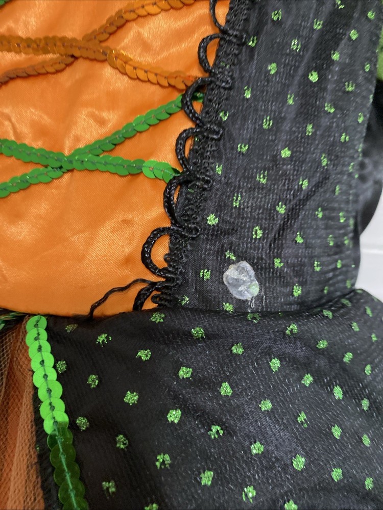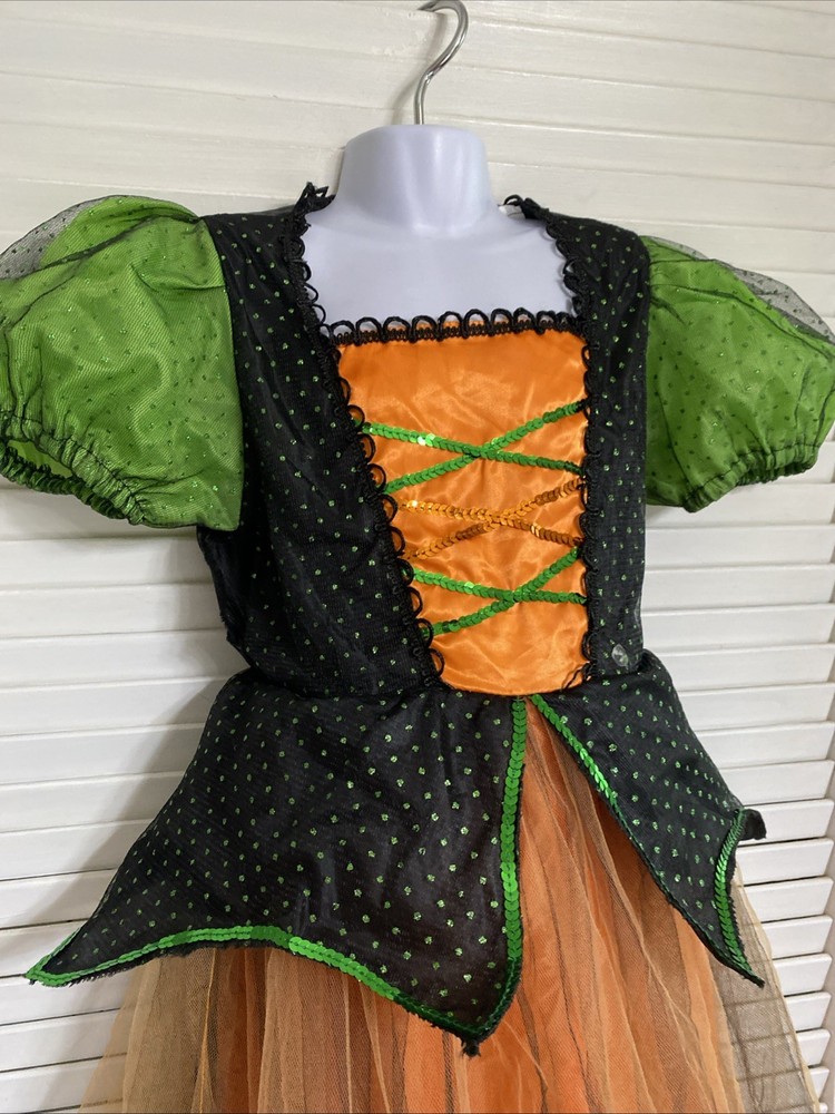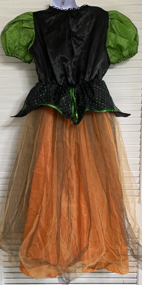 Whimsical Witch Gown Dress Costume for Kids in Orange Green Black - Child Medium