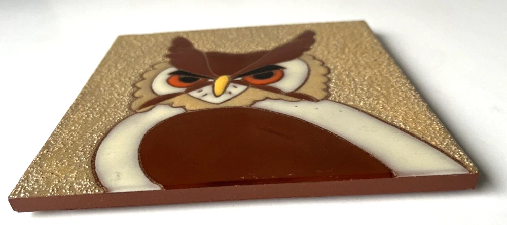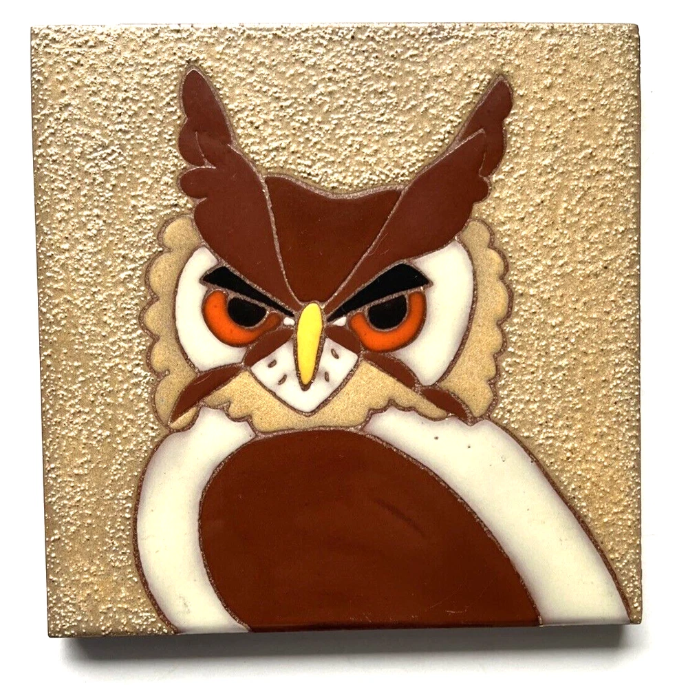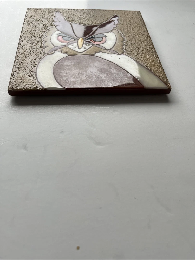 Whipple & Sibley OWL Hand Painted Native American Art Tile Wall Hanging Trivet Approximately 6 inches square. Rough texture around the owl, owl has a glossy and smooth finish. Paper sticker on back states: Whipple & Sibley Narive American Art PO Box 3658 Jackson WY 83001 Hand Painted by Marion in Jackson Hole Please send for our color catalog Riveting orange eyes. Great decorative piece. Excellent - no fault noted.