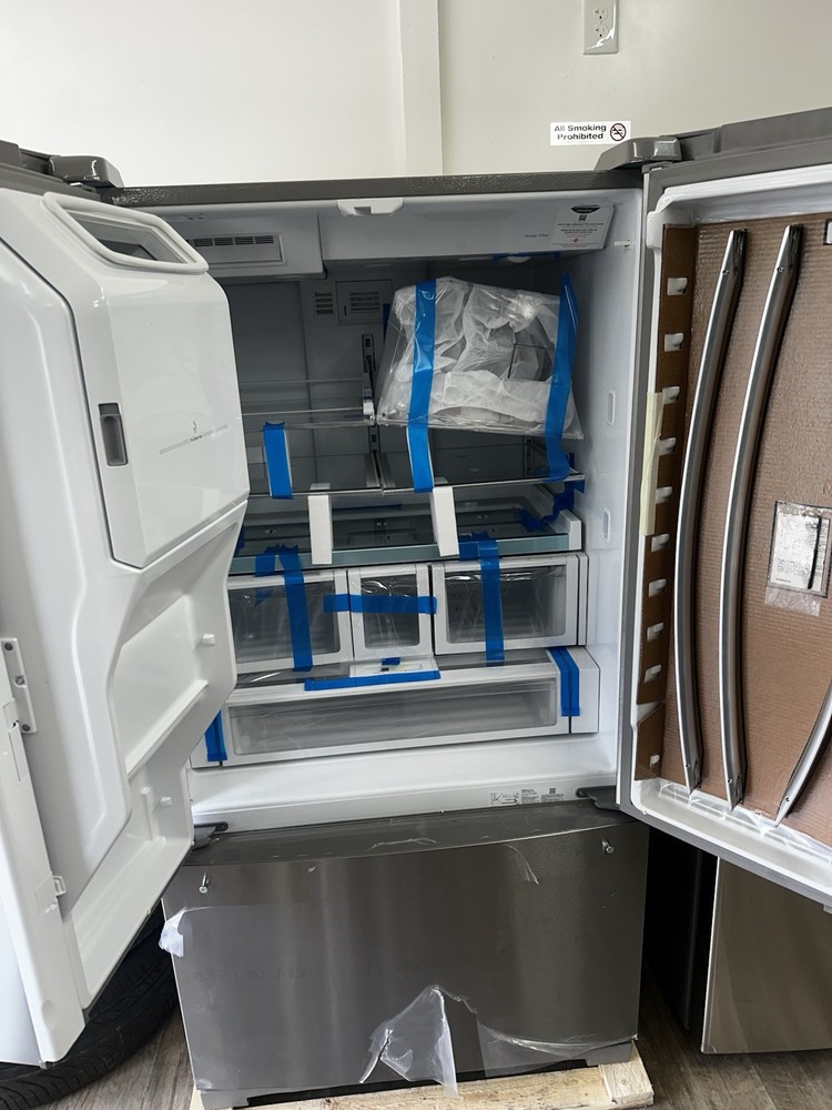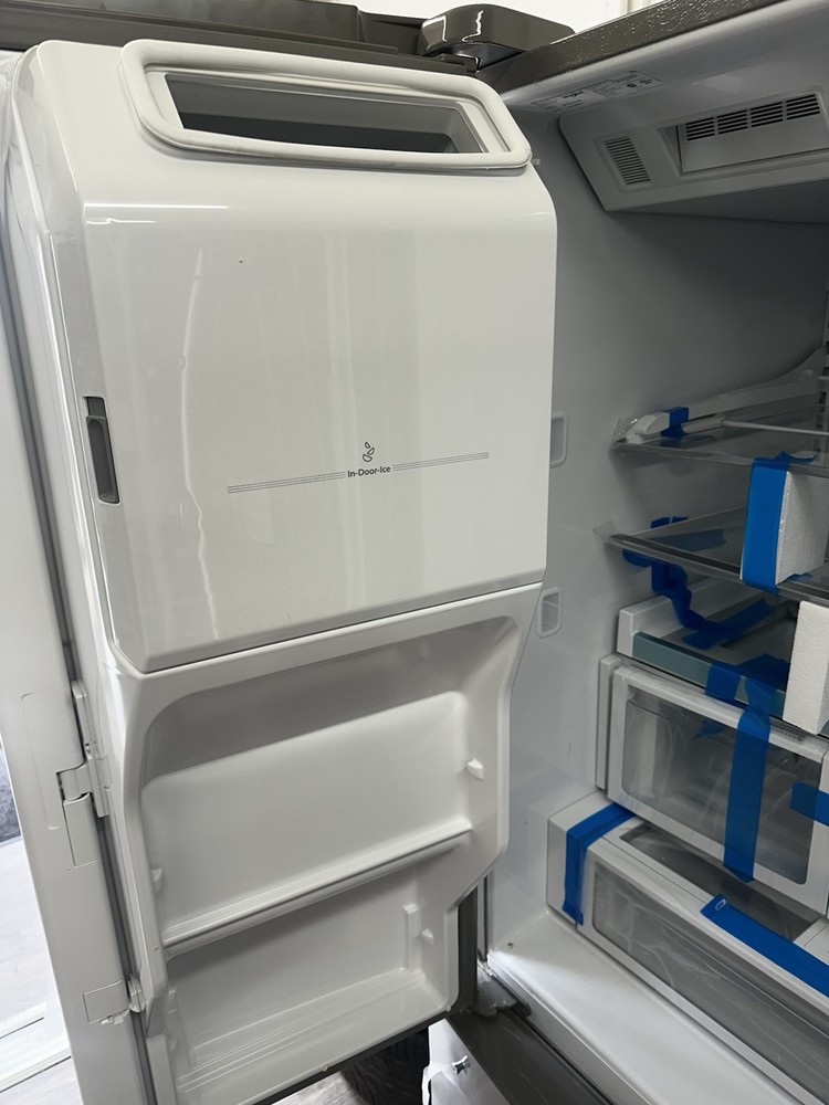 This Whirlpool French Door Refrigerator is a new freestanding unit with a capacity of 25.1-30 ft³. It features a frost-free/automatic defrost method and an adjustable thermostat. The refrigerator has a silver stainless steel finish and LED lighting. With three shelves and seven drawers, this refrigerator provides ample storage space. It also includes a water dispenser, in-door ice storage, a digital control panel, and a door open alarm. The refrigerator has a soft close door and spill-proof shelves. Additionally, it features dual ice makers located below the refrigerator. This model, Whirlpool WRF767SDHZ05, is Energy Star certified with a rating of 5 stars and comes with a 1-year manufacturer warranty.
