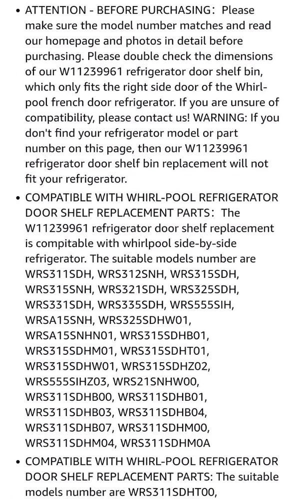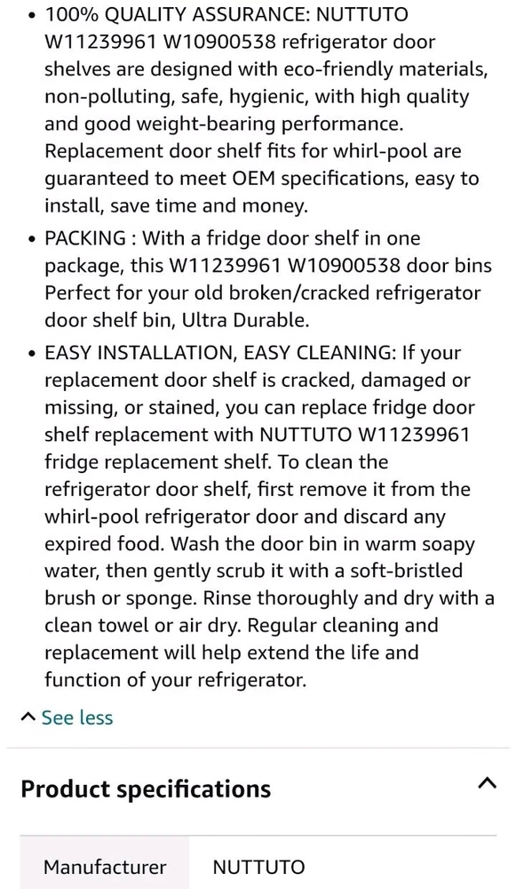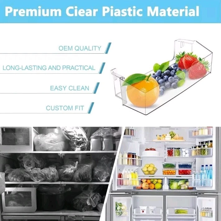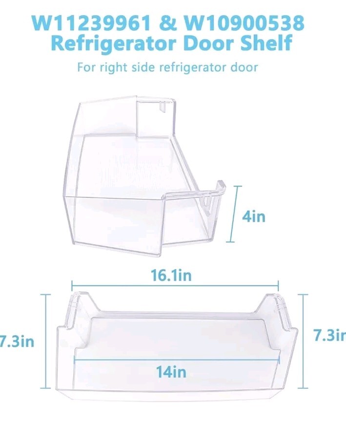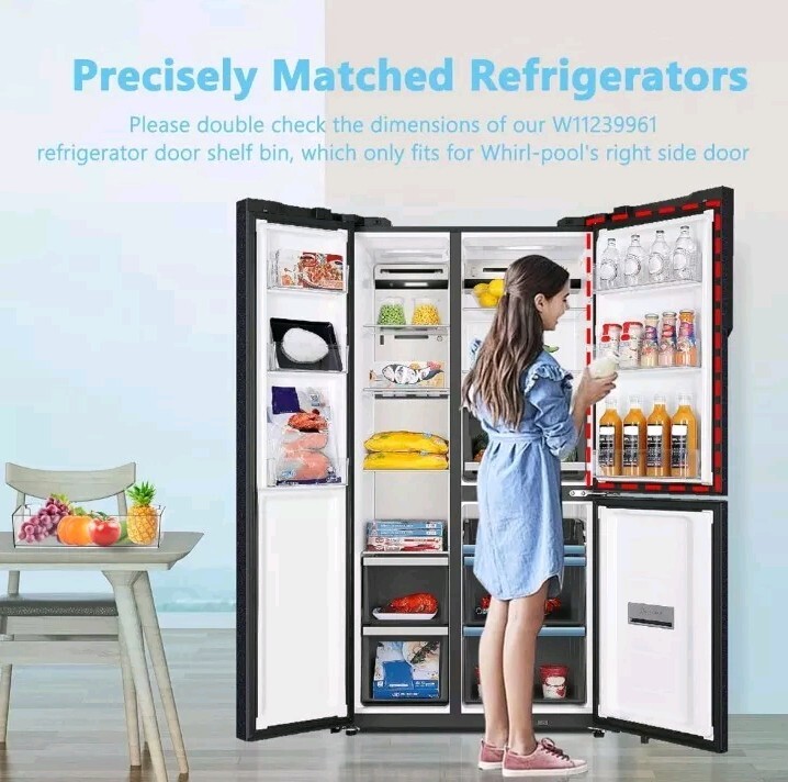 Upgrade your Whirl-Pool refrigerator with the CYL-W11239961 Refrigerator Door Bin, designed to provide an organizational boost to your appliance. This clear shelf is crafted from durable ABS plastic, promising longevity and easy maintenance. The adjustable feature offers versatility in managing your refrigerator space, ensuring that your items are stored safely and efficiently. The pack includes two units, allowing for both practicality and convenience in maintaining your kitchen's cleanliness. With an origin in China, these shelves are built to accommodate a seamless fit for your Whirl-Pool model W11239961, ensuring a hassle-free installation process. Keep your refrigerator neat and tidy with these reliable and functional bins. See pictures, some scratches