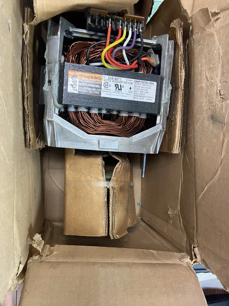 This Whirlpool WP21001950 motor has never been used and is just getting old in its original box. It is compatible with high-efficiency/importer washing machines and is suitable for anyone looking to upgrade their washer. The motor is made by Whirlpool and is designed to be reliable and efficient. The silver color of the motor adds a sleek touch to any laundry room décor. It was manufactured in Mexico and has a model number of Whirlpool WP21001950. This item falls under the categories of Washer & Dryer Parts, Major Appliances Parts & Accessories, Major Appliances, and Home & Garden.
