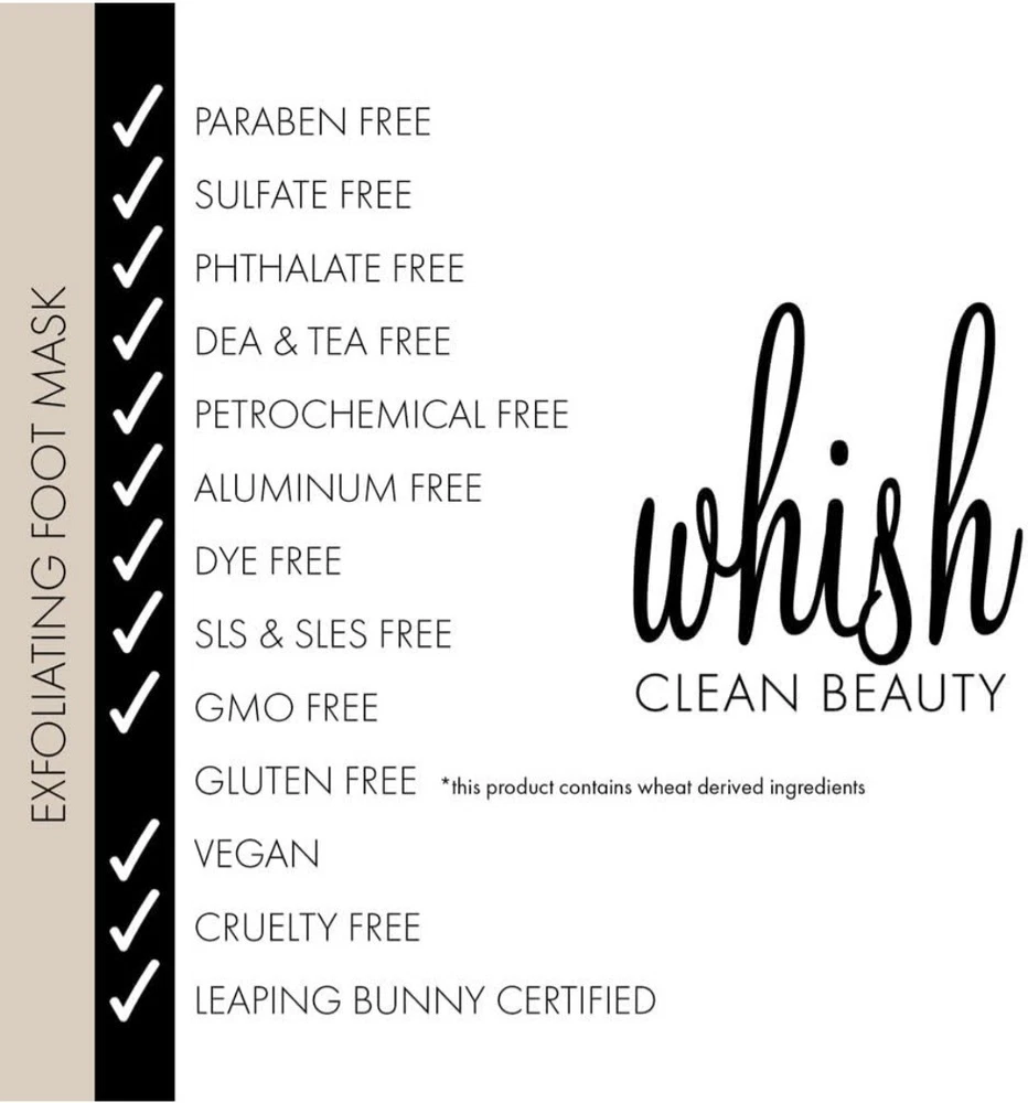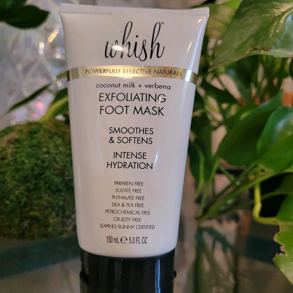 Whish Exfoliating Foot Mask - 5 oz Coconut Milk + Verbena Paraben Organic NEW. New without box Whish Coconut Milk + Verbena Exfoliating Foot Mask - Smoothes & Softens, Intense Hydration About this item EXFOLIATES: Uses papain and will bark extract to naturally exfoliate overnight. POLISH: Tough skin is polished away with pumpkin seed extract, and orange and lemon fruit extract. SOOTHE & SMOOTH: Soothes and smoothes cracked heels with bromelain, and black tea leaf extract.Leaping Bunny certified. Paraben free. Sulfate free. DEA and TEA free. Petrochemical free. Phthalate free. Naturally sourced with organic goodness. Made in the USA.
