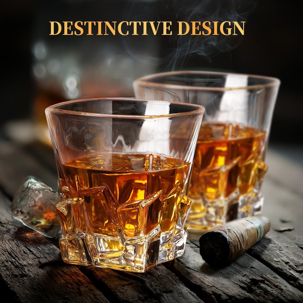 1. This whiskey decanter set is absolutely stunning—it looks elegant on any bar cart and feels premium in hand. The crystal glasses are weighty and luxurious, while the decanter pours smoothly with no spills. Perfect for gifting or treating yourself, it instantly elevates whiskey nights with its sleek design. The included glasses are just the right size for savoring your drink. A must-have for any spirits enthusiast!