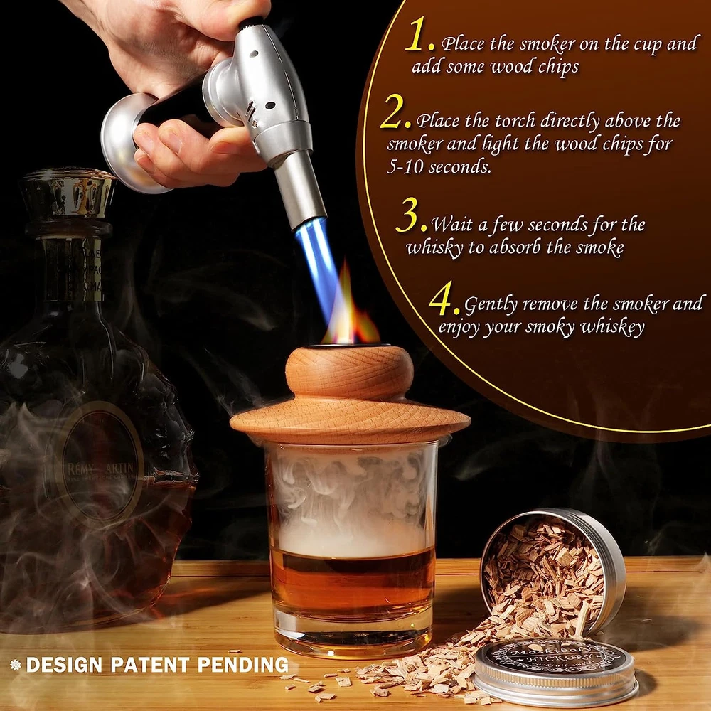 Store New Arrivals Add to Favorite View Feedback Contact Whiskey Smoker Kit with Torch, Cocktail Smoker Kit, Old Fashioned/Bourbon/Smoker Infuser Kit with 6 Flavors of Wood Chips, Gift for Father and Loved Description Item model number 1 Power Source wood Color ZJ1049 Country of Origin China Inner Material stainless steel Item Weight 0.4 Grams Outer Material Wood Fuel Type Wood Form Factor wooden exterior with stainless steel interior Package Dimensions 9.02 x 7.56 x 2.64 inches Novelty Design - This product allows you to realize your dream to make smoky cocktails at home. Just burn a few pieces of wood chips at a time to add a different flavor to your wine. The old-fashioned smoker makes you feel the joy of bartending while showing your style. Versatile - In addition to smoking a variety of beverages, you can also use it to smoke any food you like. Examples include smoked cheeses, smoked meats, and even smoked salads. In just a few seconds, your food can elevate the palate. We encourage you to use it to explore as many foods as possible to surprise your life and your taste buds. Easy to Carry - it's small, lightweight and can be packed in any backpack, so you can use it anytime, anywhere. Serve your customers a delicious smoky cocktail at the bar. Enjoy the fun of making cocktails by yourself at home. Make smoked whisky for your family and friends at a party and enjoy their thanks and thumbs up. Or, while camping, enjoy your smoky food while admiring the nature. Easy to Use - You just need to put the wood chips into the smoker, ignitet it with a torch, close the lid after a few seconds, wait for a while and enjoy your smoked whisky. You can choose the amount of smoke according to your taste, the amount of smoke depends on how much wood chips you put in and how long the lighter is lit. Plenty of Accessories - This set contains almost everything you need. A smoker, a torch, 6 flavors of wood chips, a spoon and cleaning brush, a manual. But be warned: the torch does not contain butane, so you must fill the torch with butane before using it. Product Description ABOUT US We offer the best prices around on high quality products. Our E-store includes media such as books, movies, music and games while offering electronics, toys, sporting apparel, clothing, tools, general home, garden items and more. SHIPPING We are always working hard to ensure your package arrives as soon as possible. Please understand that some factors like weather, high postal traffic, and the performance of shipping companies are outside of our control. We offer free shipping to the lower 48 states and ship within 2 business days of payment, usually sooner. We do not accept P.O. Boxes. Please provide a physical address. For shipping outside of the continental USA, we only use eBay's Global Shipping Program.The item is shipped to KY and then sent to the rest of the world. International customers are responsible for all duties and taxes. Continue to check out in order to calculate costs for shipping the item to your country. Messages regarding eBay's Global Shipping Program MUST be directed at eBay EXCLUSIVELY. RETURNS We offer a 30-Day Return Policy on items which you are not completely satisfied with. You have the option for a full-refund or an exchange of the item. No returns are available on items shipped outside of the USA. PAYMENT We accept PayPal. CONTACT US This page content is yet to come Please ad us to your favorite seller and visit again later Thank You CUSTOMER SATISFACTION We try our very best to make sure every customer is completely satisfied. If there's a problem, message us! We're happy to help. WE ACCEPT Copyright © 2021 AutoDS. | All Rights Reserved