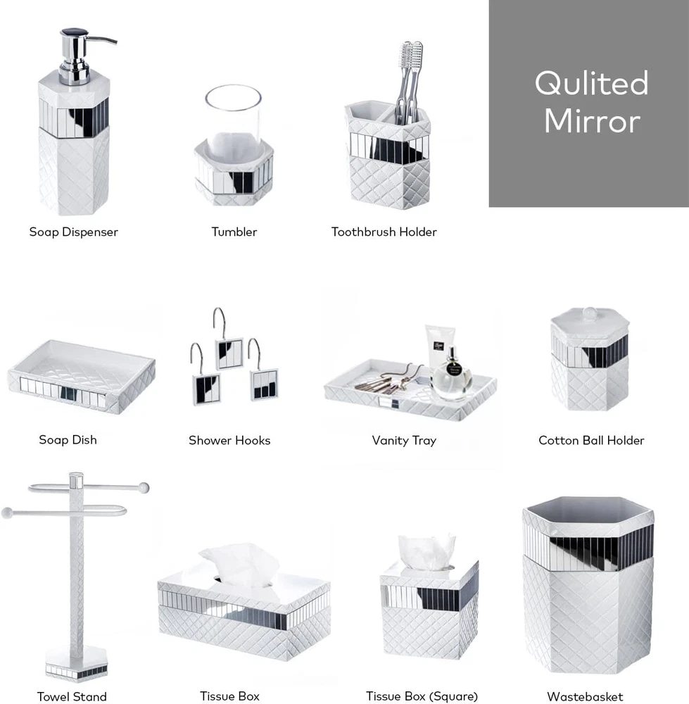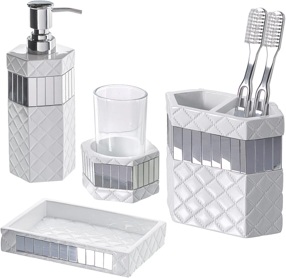 Store New Arrivals Add to Favorite View Feedback Contact White Bathroom Accessories Set - Decorative 4 Piece Bathroom Set - Mirrored Bathroom Accessory Set Includes: Soap Dispenser, Toothbrush Holder, Tumbler & Soap Dish (Quilted Mirror) Description Style Mirrorred Color 4 Piece Set Material Resin Material Type Resin Included Components Tumbler, Toothbrush Holder, Soap Dispenser, Soap Dish Finish Type Mirror Style Name Mirrorred This Bathroom Accessory Set is Made of Quality Resin Material Bathroom Accessories Sets Complete: These 4-Piece Bathroom Sets Include A Toothbrush Holder With Two Slots For Convenience; Soap Dispenser: The Wide Mouth Makes Refills So Easy. Tumbler: Is Perfect For A Rinse After Brushing Or To Use As A Toothbrush Holder. Soap Dish: Fits Soap Bars Of Most Sizes. Decorative Look: With An Enchanting Mix Of Elegant White Color And Beautiful Mirror Pieces The Bling Bathroom Soap Dispenser Set Complements Any Modern Bathroom Decor And Will Definitely Wow Your Guests! Designed To Last: All Bathroom Decor Sets Accessories Are Made Using Quality Resin Material Which Never Rusts For Enhanced Durability & Functionally, Unlike Cheap Bathroom Sets Accessories That Easily Tarnishes. Accommodates Multiple Users: The Bathroom Toothbrush Holder Set Adds A Functional Touch To Secondary And Master Bathroom Décor By Meeting The Needs Of Multiple Users. Perfect Gift Idea: Packed In A Lovely Gift Box, The Quilted Mirror Bathroom Decor Set Is A Great Toilet Accessory Gift Set. Click ‘add To Cart’ Now! TREAT YOUR BATHROOM TO THAT ELEGANT TREATMENT Touch of Beauty Master or guest bathroom, these decorative bath accessory sets are guaranteed to take your décor from ordinary to picturesque! Every bath shower set includes a soap dispenser, tumbler, soap dish, and a toothbrush holder that is big enough to accommodate multiple electric toothbrushes. You’ll absolutely love the attention to detail that has gone into every piece. With an eye-catching touch of color coupled by pretty patterns, these master and guest bathroom accessories are the perfect complement to any modern bath. Built to Last At Creative Scents, we place quality at the center of all our products. And this bath decor set is a testament to our emphasis on superior quality. We’ve used the highest-grade resin to craft every piece, ensuring that even in the humid conditions of your bathroom, the bathroom tumbler set will still remain in amazing condition by keeping mold and discoloration at bay. And since we know you’ll want to grab one for yourself and a couple more for friends and family, we’ve packed every complete bath set in a lovely gift box to make for incredibly memorable presentation. Here’s why you’ll love this bath accessory set: - Includes all the accessories needed for any modern bath. - Choice of enchanting color and pattern to match any décor. - High quality design to ensure maximum durability. - Large enough to accommodate the needs of multiple users. - Beautifully packaged to act as a great birthday or Christmas gift. Count on Creative Scents for a bath décor set that will impress you with quality and make your bathroom a total compliment magnet. Click ‘Add to Cart’ now! ABOUT US We offer the best prices around on high quality products. Our E-store includes media such as books, movies, music and games while offering electronics, toys, sporting apparel, clothing, tools, general home, garden items and more. SHIPPING We are always working hard to ensure your package arrives as soon as possible. Please understand that some factors like weather, high postal traffic, and the performance of shipping companies are outside of our control. We offer free shipping to the lower 48 states and ship within 2 business days of payment, usually sooner. We do not accept P.O. Boxes. Please provide a physical address. For shipping outside of the continental USA, we only use eBay's Global Shipping Program.The item is shipped to KY and then sent to the rest of the world. International customers are responsible for all duties and taxes. Continue to check out in order to calculate costs for shipping the item to your country. Messages regarding eBay's Global Shipping Program MUST be directed at eBay EXCLUSIVELY. RETURNS We offer a 30-Day Return Policy on items which you are not completely satisfied with. You have the option for a full-refund or an exchange of the item. No returns are available on items shipped outside of the USA. PAYMENT We accept PayPal. CONTACT US This page content is yet to come Please ad us to your favorite seller and visit again later Thank You CUSTOMER SATISFACTION We try our very best to make sure every customer is completely satisfied. If there's a problem, message us! We're happy to help. WE ACCEPT Copyright © 2021 AutoDS. | All Rights Reserved