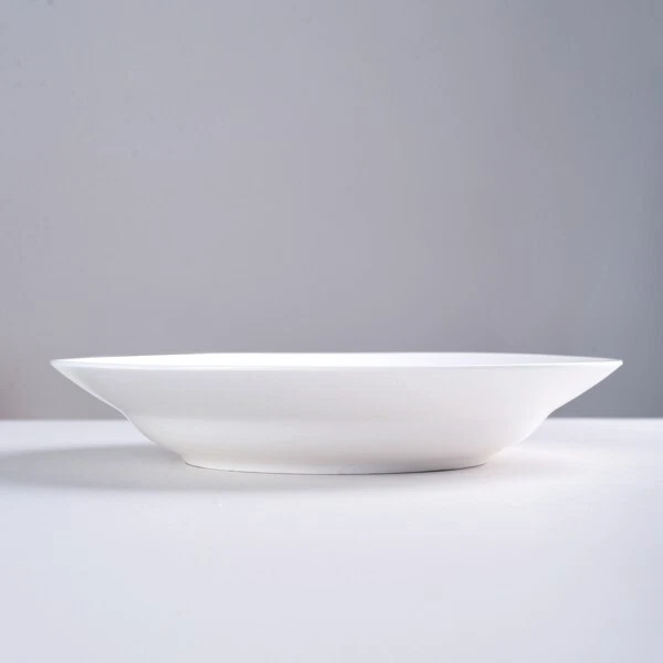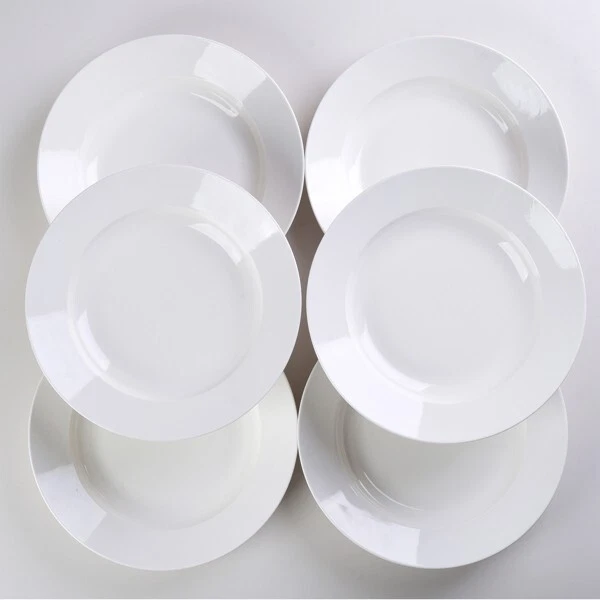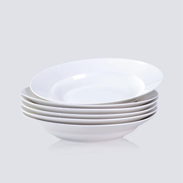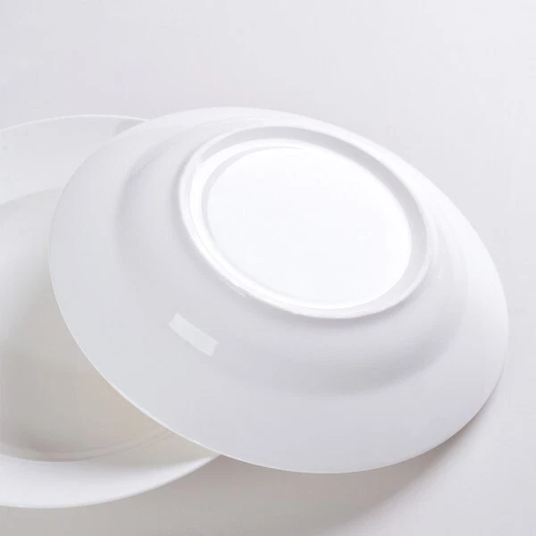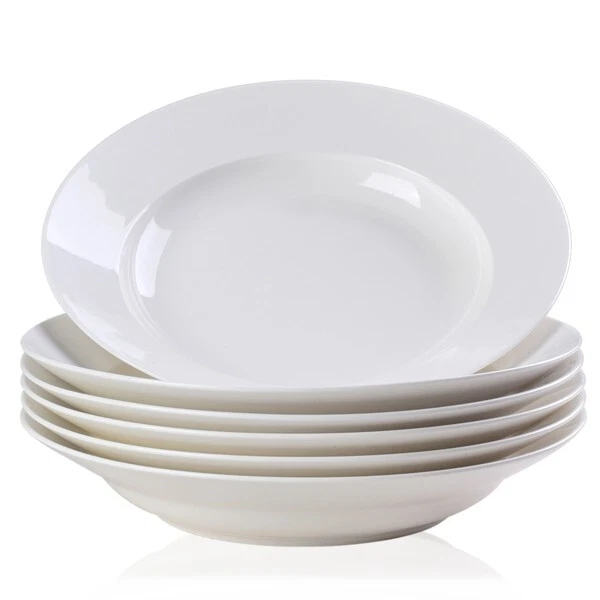 Features: 1. Material: Ceramic 2. Color: White 3. Dimensions: outer diameter -23.5cm/9.5in, inner diameter -16.9cm/6.7in, depth -4.5cm/1.8in 4. Capacity: Full capacity -600ml/21oz, half capacity -300ml/10.5oz 5. Single weight: 0.88 pounds/0.4 kilograms Package:6 x plates