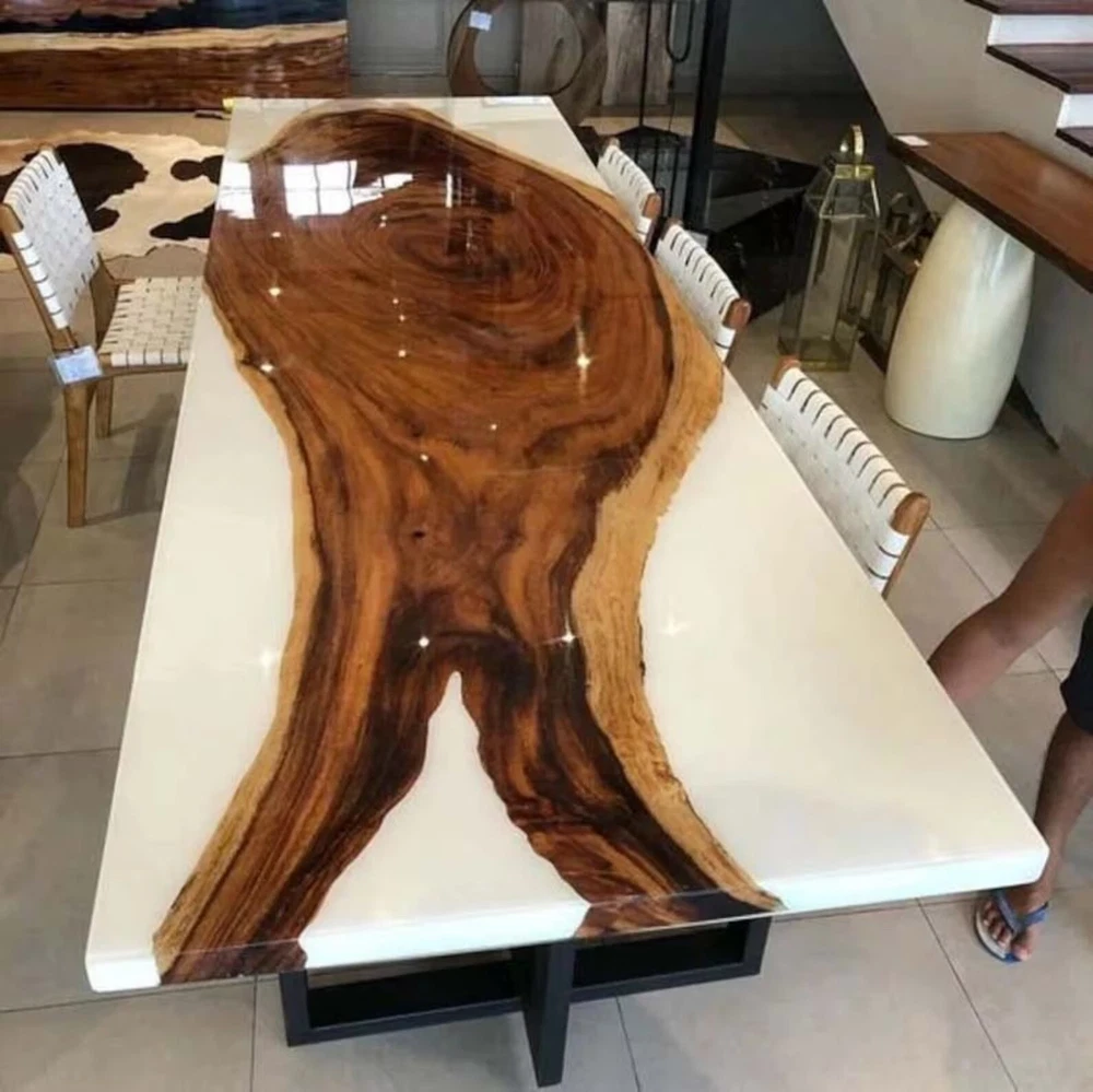 White Epoxy Resin Top Dining Table, Conference Meeting Table, Epoxy Walnut Table