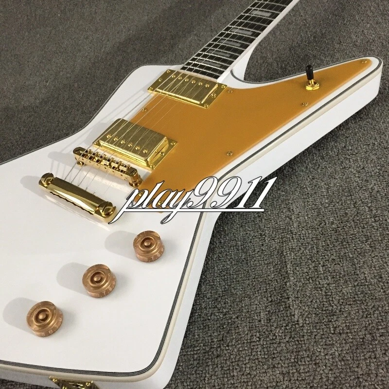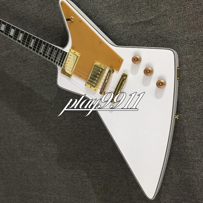 White Explorer 70s HH Pickups Electric Guitar Gold Pick Guard Factory Outlet Instruction: Our company is located in China,specializing in producing various kinds of guitar and its accessories. Currently we produce over 200 different models of electric and acoustic guitars! That not only look fabulous, but are extremely playable and the quality truly extends above the price tag. Every guitar is made with painstaking effort, we design and manufacture with our hearts, so that every guitar is unique. Features: Body:Mahogany Neck: Mahogany Fingerboard: Black Pickups:2 Humbuckers Pickup Switch:3-ways Electronic:1 Volume 2 Tone Bridge:T-O-M Hardware:Gold Joint:Bolt on Nut width: 43 mm Scale Length:24.7 inch Quality Guarantee All of our products must pass a detailed inspection and quality control check before leaving our facilities. This ensures that our products will meet the global standards for instruments, that have been set over many decades. Note: Remember we make these guitars by hand. And we don't just make one. Things like wood grain, texture, and color, may differ slightly than the one pictured. We do many custom builds so please contact us today with those ideas on that next one of a kind guitar. Since we are the manufacturer we are also able to offer you WHOLESALE pricing, with extreme consistency in product. Delivery Time Once payment has been confirmed, your item will be shipped within 3 or 30 business working days.That deoends on speciafic goods deliver ways.The speed also base on Custom Clearance Speed, which we can't control.So if you want this for your gig next weekend it probably wont make it on time, so please keep that in mind when ordering. We package very carefully but can highly recommend shipping your newbaby in a protective soft or hard case. Return Policy Please contact us within 3 days of receiving your damaged or defective item and we can start the exchange/return/refund process. If there is a delay in handling time we will let you know. Please make sure your shipping address is current and updated. Customer service All emails will try to be answered within 24 hours. We do receive a lot of emails and sometimes they get lost so, If you do not receive a reply within a few business days, please kindly re-send your email and we will reply back you as soon as possible. Please contact us first, our customer service representatives are here to assist you.