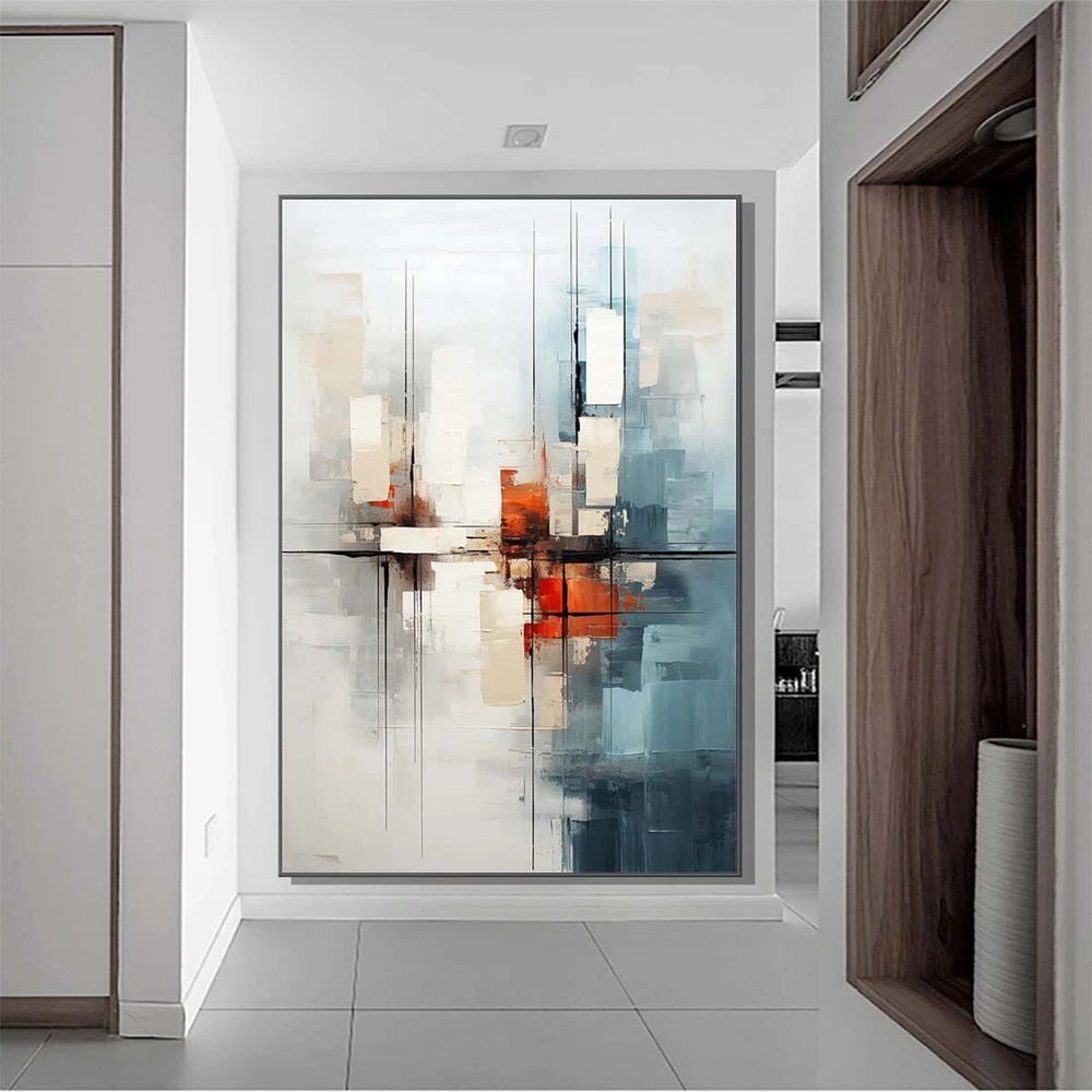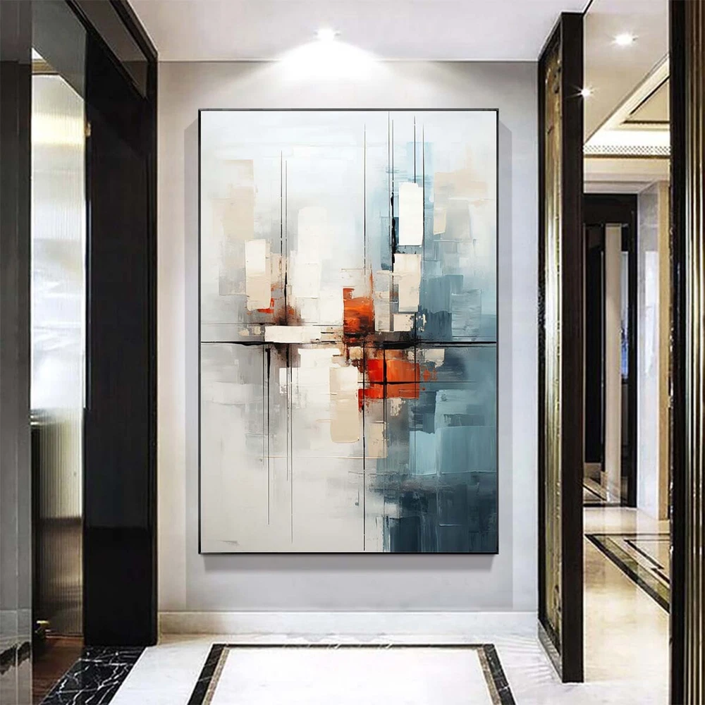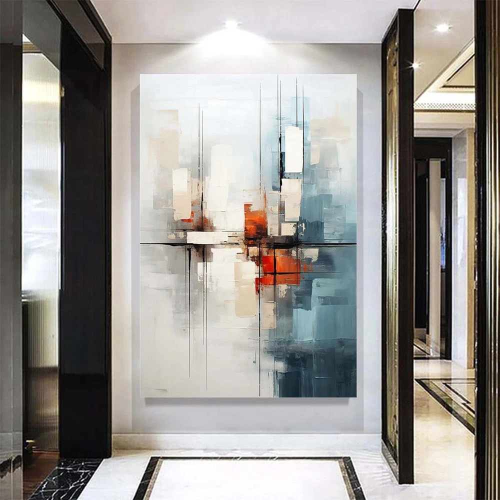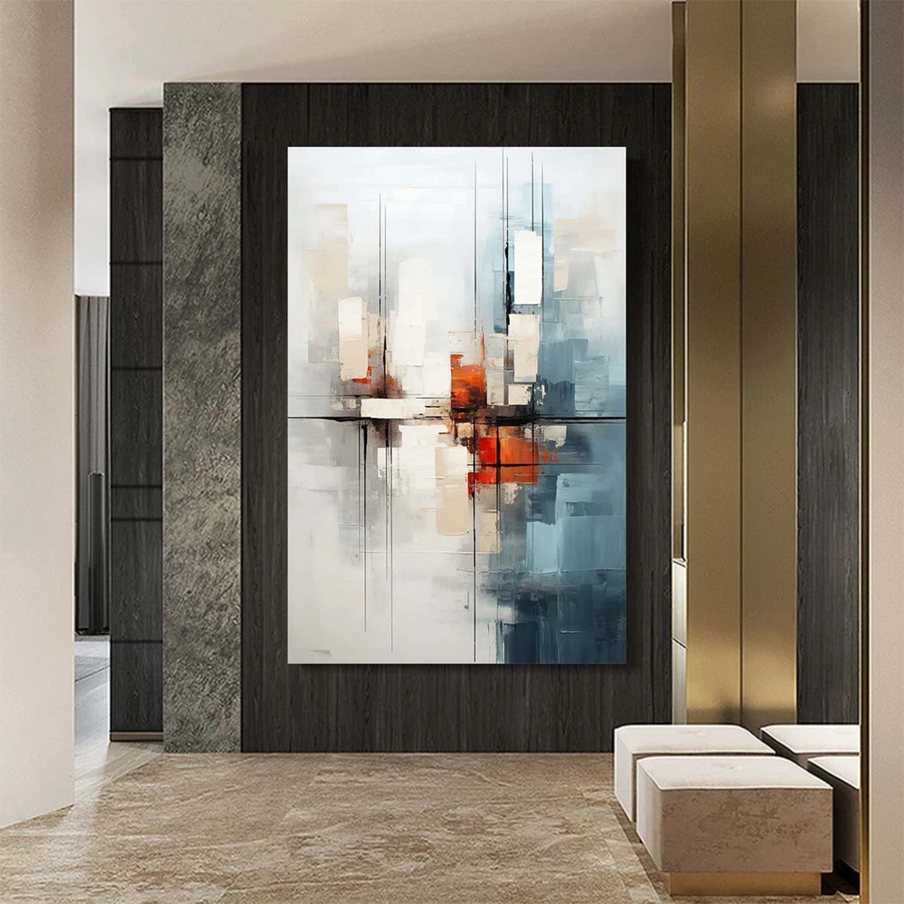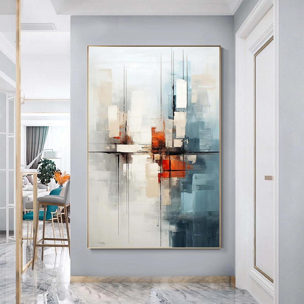White Hand-Painted Modern Abstract Oil Painting On Canvas Art Picture Home Blue