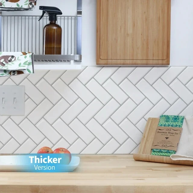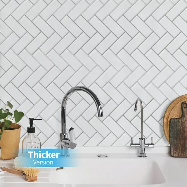 THICKER VERSION - The Art3d upgrated version tile is 2-3 times thicker than ordinary peel & stick tile, 2mm-2.5mm each, durable and solid tile, unlike soft sticker tiles STRONGER ADHESIVE - The upgraded version tile is 3X stronger backing glue than ordinary vinyl backsplash tile, not only stick firmly to the smooth & clean surface, but also available on lightly textured wall BIGGER SIZE - The size of the tile is 12"x12", which covers 40% more area than a 10"x10" tile does WATERPROOF & HEAT RESISTANT - Widely used in kitchen backsplash, kitchen island walls, bathroom backsplash, shower, fireplace, and installed behind the stove EASY DO IT YOURSELF - Just peel, interlock and stick. No need to overlap, no grout, no glue, no mess, no special tools and no experience needed.