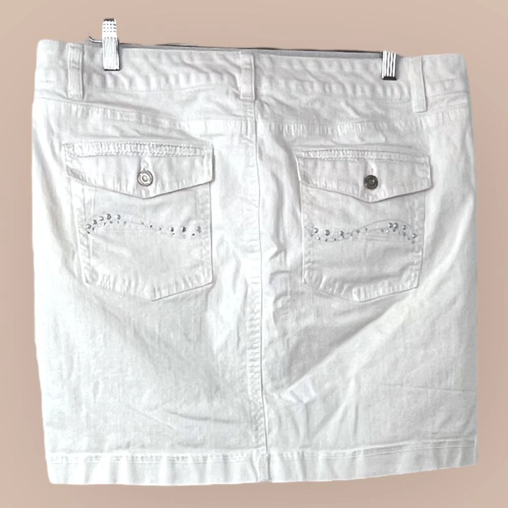 Great preowned condition (see pics for details) Features: • Style Profile: retro Y2K embellished beaded sequin minimalist classic denim • Flaws: no holes, stains or tears. Measurements: • Waist (flat lay) 19" • From top of waist to bottom hem 17.5" • We are happy to answer any questions. • Washing Instruction: machine washable Size: 12 Super fast shipping: We ship out the next business day!