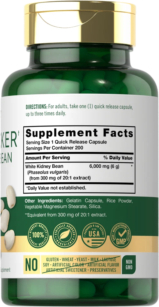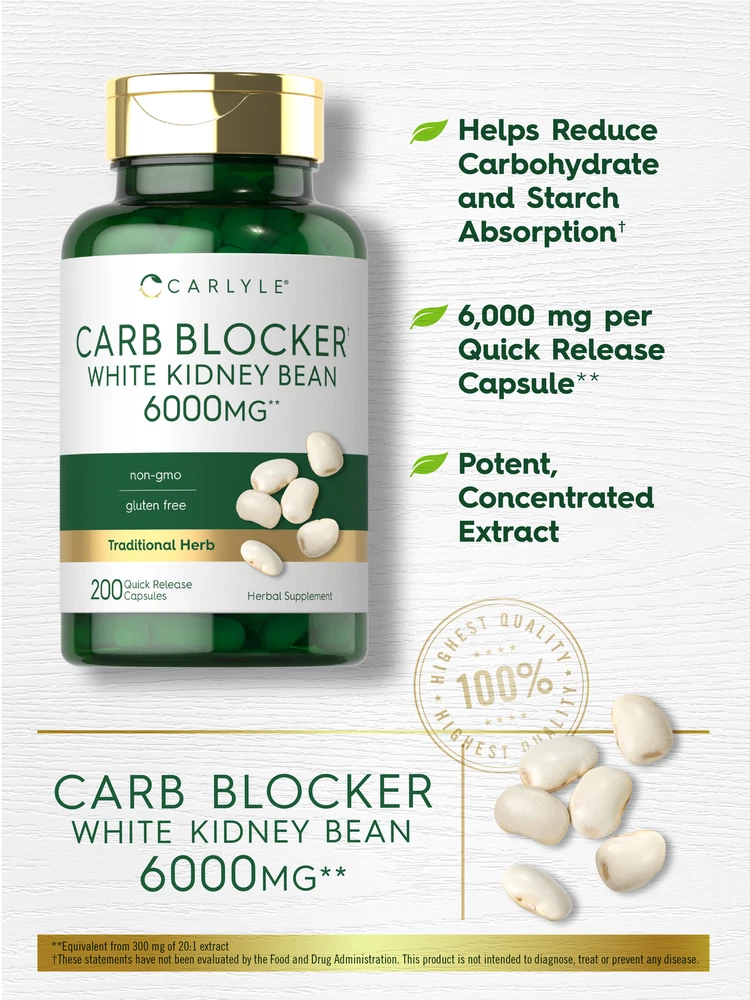 What is White Kidney Bean? White Kidney Bean, or Cannellini Bean, is a nutritious food that is part of the legume family. Native to Central and South America, White Kidney Bean has been made popular in Italian cuisine and can be enjoyed in many ways. White Kidney Beans also offer a wide range of vitamins and minerals and are an excellent source of naturally occurring fiber and protein. Now there’s a way to receive the benefits of this nutritious bean in convenient form to support your daily routine. Carlyle White Kidney Bean: Upgrade your routine with Carlyle White Kidney Bean! This traditional herbal supplement provides the equivalent of 6,000 mg of White Kidney Bean in each quick-release capsule for maximum support. We test our herbs for purity and potency, always bringing you the best quality ingredients you deserve. Our formula is gluten-free, non-GMO, and preservative free, making it the best choice for men and women everywhere. Rooted in Wellness: Our expertise in sourcing the purest ingredients combined with advanced technologies makes us proud to deliver premium, honest supplements at the best value. Carlyle White Kidney Bean is a testament to our commitment to excellence, made with powerful ingredients rooted in wellness. Thanks for choosing us in your pursuit of living healthy. WARNING: Not intended for use by pregnant or nursing women or persons under the age of 18. If you are taking any medications, including blood sugar-lowering medications, or have any medical condition, including diabetes or hypoglycemia, consult your doctor before use. If any adverse reactions occur, immediately stop using this product and consult your doctor. If seal under cap is damaged or missing, do not use. Keep out of reach of children. Store in a cool, dry place. This product should be used in conjunction with proper diet and exercise. Consult your physician before beginning any exercise program.