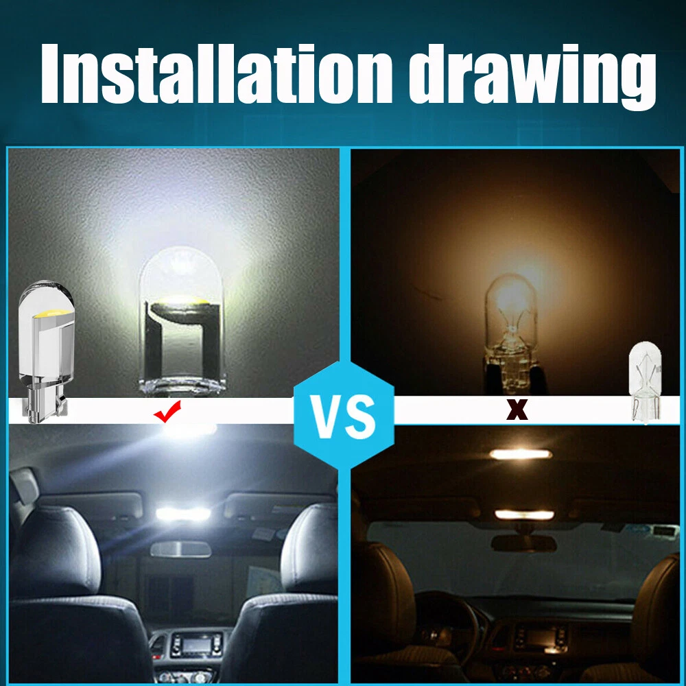 White LED T10 194 168 W5W Car Interior Light Map Trunk License Plate Light Bulbs Product Description This Page Features is 10pcs T10 W5W 194 LED Light. Bulb Size:(For Reference Only) T10 194 168 W5W 2825 147 152 158 159 161 175 184 192 193 259 280 285 447 464 555 558 585 655 656 657 1250 1251 1252 2450 2652 2921 2825 906 579 Application: Interior Door Light Bulb / side Marker Light Bulb rear / front Tail Light Bulb Inner / License Light Bulb / Glove Box Light Bulb Stepwell light bulb / Trunk or Cargo Area Light Bulb/ Dome Light Bulb Check Engine Light Bulb / Courtesy Light Bulb / Parking Light Bulb Center High Mount Stop Light /Dome Light Bulb / Map Light Bulb Door Mirror illumnination light bulb. Note: ● Compatible List can not show up all Car model. Please confirm whether the item matches your car before you purchase. ● This item fits different positions, depending on the bulb size of your vehicle's make,You can also send us your car informations (Maker, Model, Year) To get support. About Our Product: - This w5w LED bulb has the 1:1 same size as original halogen bulb for 100% hassle-free fitment. - All-in-one optical PC shell delivers even light without any shadows. - LED Chips: 1 x customized LED - Lumens: 120lms/bulb - Wattage: 0.4W/bulb - Voltage: 12V Package Included:10pcs LED bulbs (with packaging) Payment Delivery details Terms of sales About us Contact us Payment - We accept the payment through Payoneer only. - Payment must be fulfilled within 7 days after the end of auction. - Please make sure your Payoneer and ebay address is correct. Or not, please correct it before payment. - If you are a big customer, Please contact with us about the item's PRICE and SHIPPING. - Your feedback & suggestion is deeply appreciated, thanks. Delivery details All orders will be shipped out during our handling time after receiving payment. Please provide right detail address (include house number,Street name) to us in order to you ship the order to you as soon as possible! If you want ship the items by other way, please feel free to contact us. Thanks Terms of sales 1.You have 7 days to contact us and 30 days to return it from the date it was received. If this item is in your possession more than 7 days,it is considered used and WE WILL NOT ISSUE YOU A REFUND OR REPLACEMENT. There are NO EXCEPTIONS! 2. All returned items MUST BE in the original packaging and you MUST PROVIDE us with the shipping tracking number, specific reason for the return, and your eBay ID. 3. We will refund YOUR FULL WINNING BID AMOUNT, upon receipt of the item in its original condition and packaging with all components and accessories included,AFTER BOTH Buyer and Seller cancel the transaction from eBay. OR, you may choose to have a replacement. 4. Return shipping is to be paid by the Buyer. About us High quality product quality is our aim. Satisfying you is our happiest job. Therefore, we will try our best to provide you with the best products and services according to your requirements and deliver them on time. If we do not make enough improvements or need improvement, please send us an email suggestion. If you like our products and services, please provide us with positive feedback in advance so that we have more confidence and more opportunities to serve more client. Contact us 1. We greatly appreciate your POSITIVE feedback. 2. Negative or Neutral feedback does not resolve any underlying issues that you may be experiencing as a buyer. 3. Any question or unsatisfaction please contact us with ebay message, we will sincerely solve for you. Our Working Time is (GMT+8): 8:00AM -- 5:00PM (Monday to Friday)