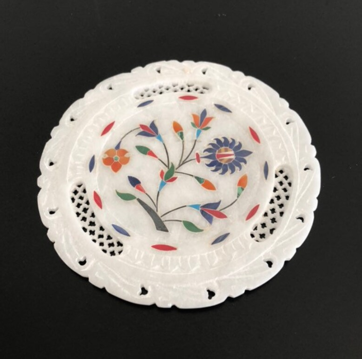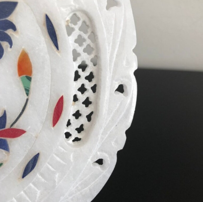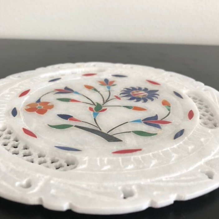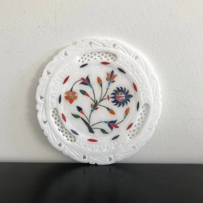 Elevate your dining experience with the RJ INLAY MARBLE ART Vintage 9" Marble Inlay Trivet Plate, a stunning piece of art that serves as a versatile addition to your tableware. With its intricate Floral pattern, this round plate is a testament to the timeless beauty of Art Deco style. Crafted from high-quality marble, the trivet boasts a vibrant multicolor palette that adds an elegant touch to any setting. Perfect for a variety of occasions, this plate can be used as a dinner plate, salad plate, or even a unique centerpiece. The durable construction ensures lasting use, while the lifetime manufacturer warranty offers peace of mind. Whether you're hosting a formal dinner or enjoying a casual meal, this exquisite piece from India is sure to impress. Marble Inlay plate, inlay plate, marble plates, marble plate set, plate carrier used, plate carrier, plate carrier, Militaria, plate set, plate carrier vest, plate carrier with plates, plate holder, plate cover for car, plate block stamps, plate hangers for wall, plate block stamps united states, marble inlay plate set, marble vintage plate, vintage plate set
