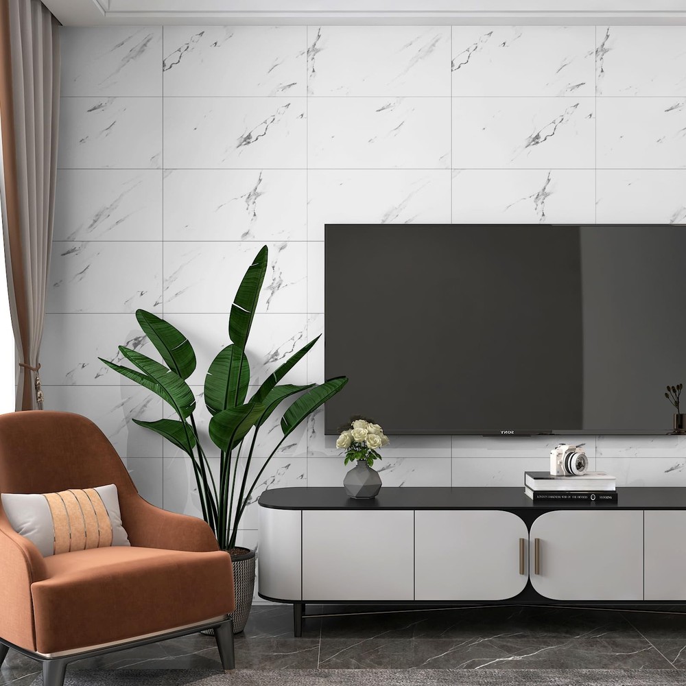 12x12 White Marble Vinyl Peel and Stick Self Adhesive Floor Tile