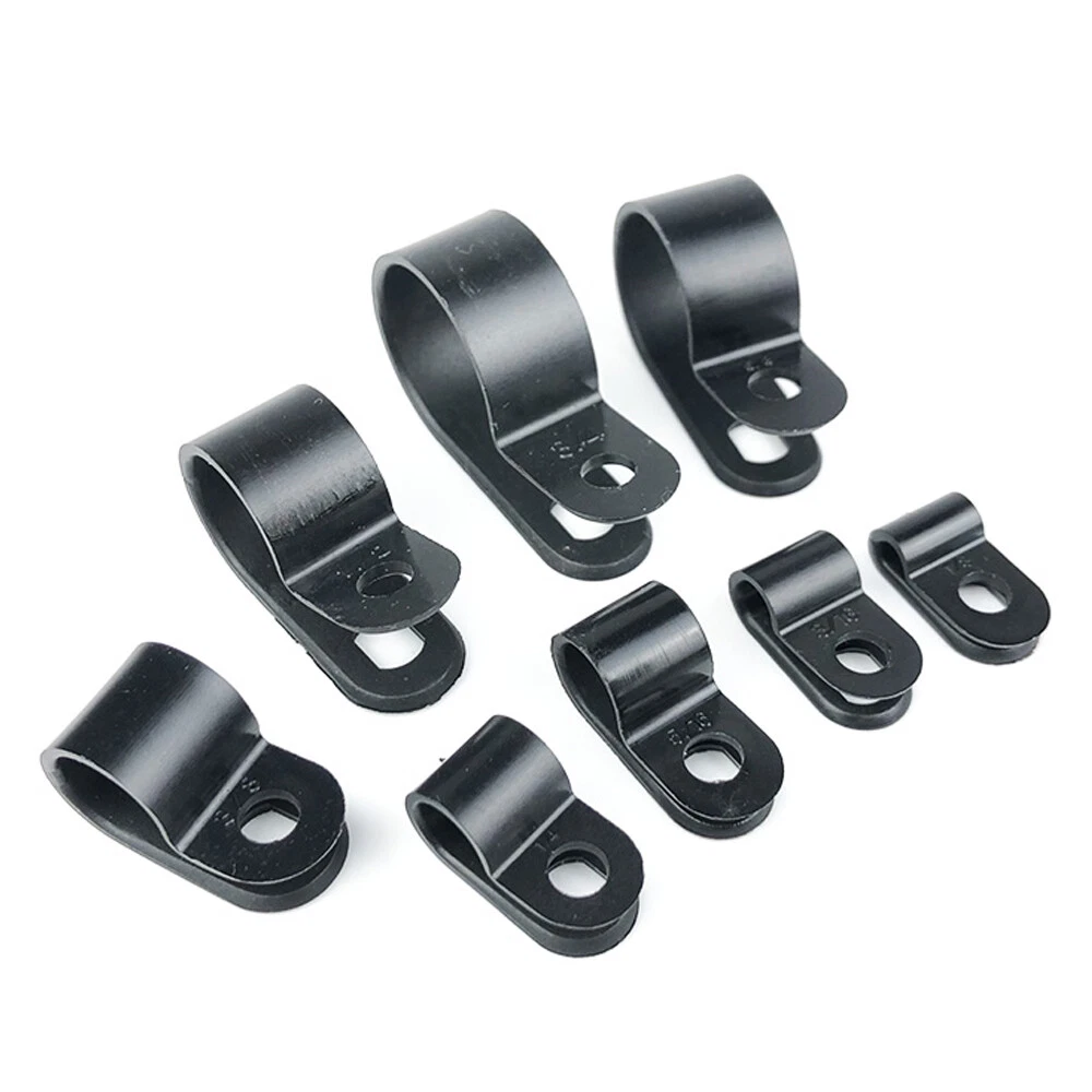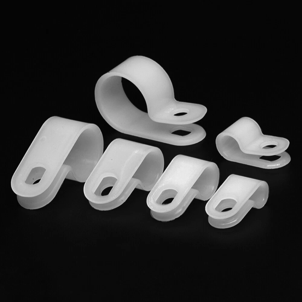 Black / White (Natural) Nylon Plastic Cable Clamps P Clips R Clips Hose Cable Wire Holder High-quality materials, I ndustrial quality, E nvironmentally friendly, Safe and reliable , durable and long life . Excellent craftsmanship, Smooth without burrs, quick and simple use. Self-locking, with good insulation level and great flam retardant. The binding is firm, not easy to loosen, with strong tensile force and good toughness. ● System of Measurement: Metric ● Standard: GB ● Material: Polyamid 66(Nylon 66)( PA 66 ) ● Fire protection grade: UL94V-2 ● Temperature range: -20℃ to +120℃ ● Colour: Black / White (Natural)