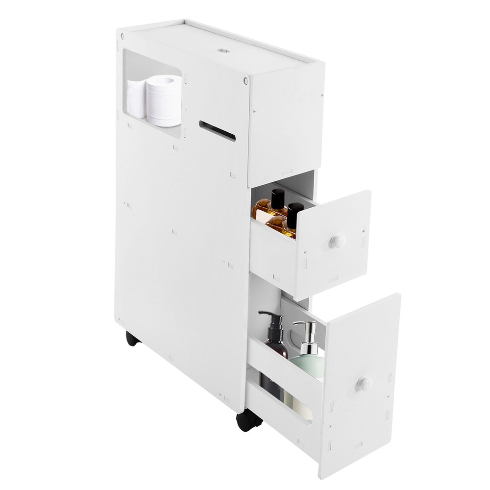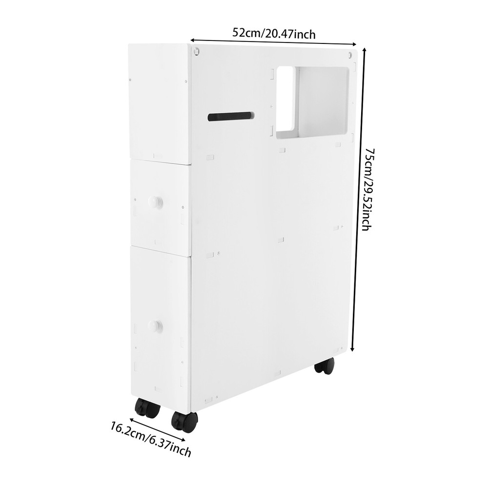 Specifications Color: White Style: Modern Material: Pvc Process: Carving Shape: Rectangular Assembly Required: Yes Mount Type: Floor Standing Load-bearing Capacity: 50kg/110.23 Lbs Product Size: 52*16.2*75cm/20.47*6.38*29.53in Package Size: 74*56*7cm/29.13*22.05*2.76in Gross Weight: 6.45kg/14.22lbs Net Weight: 5.8kg/12.79lbs Package Included 1* Bathroom Storage Cabinet 4* Universal Wheels White PVC Bathroom Floor Cabinet Storage Cupboard with Drawers Free Standing Description This Bathroom Storage Cabinet Is Not Only Sturdy and Reliable but Also Thoughtfully Designed and Powerful. the Drawers and Top Storage Space with Different Sizes Give Your Daily Supplies a Suitable Location. the Narrow and Tall Body Can Be Placed in Narrow Spaces While Providing Sufficient Storage Capacity. with This Product, You Can Create a Neat and Cozy Environment, so That You Can Have a Good Mood Every Day! Key Features Build to Last: Premium Pvc Boards with a Carving Process Make This Product Environmentally Friendly, Safe, Wear-resistant, and less Prone to Deformation so That It Can Maintain Aesthetics and Practicality for a Long Time. Large Capacity: the Heightened Bottom Drawer Can Be a Convenient Place for Your Large Towels, Tall Bottles of Shampoo, and Laundry Detergent, and the Smaller Drawer Is for You to Organize Cosmetics, Toiletries, Cleaning Products, and so on. the Top Flap Design Compartment Is Also Convenient for You to Store Papers, Sanitary Napkins, and Other Small Items. User-friendly : the Toilet Paper Openings on Both Sides Ensure Smooth Tissue Pulling Without Jams, the Groove on the Back of the Product Is Designed to Make It Easy for You to Store Your Toilet Brush, and the Drawer Design Can Protect Your Items from Dust and Moisture for Better Storage. Space-saving: Its Small Footprint (20.47*6.38-Inch) and Tall and Slim Design Make Full Use of Vertical Space, Making It Fit into Relatively Narrow Spaces in the Bathroom. Movable and Lockable: the 4 Universal Wheels with Brakes Allow You to Move This Product Easily, Smoothly, and Quietly and Are Also Convenient for You to Fix to Prevent Accidental Movement and Ensure Stability. Fashionable Appearance : the Classic White and Smooth Lines Make the Whole Product Simple and Modern. Wherever It Is Placed, It Will Be Beautiful Scenery. Ideal Gift : Beautiful Appearance and Practical Function Make It Can Be a Housewarming Gift for Family and Friends. Simple Cleaning : Simple Construction and Smooth Surfaces Make This Product Easy to Clean, You Just Need a Wet Towel to Easily Remove Dust and Strains. Customer Service : We Aim to Provide Quality Products and Services. If You Have Any Problems, Please Feel Free to Contact Us. We Will Reply to You and Solve the Problem for You As Soon As Possible. Details Practical Handles: the Small Round Handles Make It Easy to Open and Close the Drawers. Rounded Corners: They Can Protect Your Hands from Being Scratched During Use and Also Enhance the Aesthetics of the Product. Application It Is Suitable for Storing Tissues, Shampoos, Creams, and Other Daily Items in the Bathroom, Toilet, Bedroom, Laundry Room, Kitchen, Etc. Specifications Color: White Style: Modern Material: Pvc Process: Carving Shape: Rectangular Assembly Required: Yes Mount Type: Floor Standing Load-bearing Capacity: 50kg/110.23 Lbs Product Size: 52*16.2*75cm/20.47*6.38*29.53in Package Size: 74*56*7cm/29.13*22.05*2.76in Gross Weight: 6.45kg/14.22lbs Net Weight: 5.8kg/12.79lbs Package Included 1* Bathroom Storage Cabinet 4* Universal Wheels 1pair* Gloves 1* English Installation Diagram Other Accessories for Assembly Notes Please Check the Size Carefully Before Ordering. Please Note That This Product Does Not Include Any Bathroom Items Such As Toilet Paper and Shampoo. Please Allow the Slight Color Difference Caused by the Shooting Light and the 1-3 Cm Error Due to Manual Measurement, and Make Sure You Do Not Mind Before Ordering. Payment Delivery details Terms of sales About us Contact us Payment We accept ebay payment 。 Fees such as import duties, taxes are not included in the item price or shipping costs. These charges are the buyer's responsibility. Delivery details Shipping: 2-9 working days to: USA Terms of sales We maintain high standards of excellence and strive for hundred percent customer satisfaction. Feedback is very important to us. We hope that you contact us immediately before you give neutral or negative feedback, so that we can address your concerns. It is impossible to address issues if we do not know about them! About us Your satis faction is our ultimate goal. We work hard to earn your trust and future business. Our certified technicians have tested each item before shipping. The unit comes with 1 year limited warranty on all manufacturing defects. a) If you receive a defective item, you may return it or ask for a discount. Please contact us within 14 days after you receive the package. b) What you returned must be intact and in its original packaging as re? u. Customer is responsible for shipping costs of the returned item. c) We will cover the cost of shipping back t with the shipping rate indicated in the registration page. We will send you a new unit or refund the full payment you paid. Thank you. Contact us Business Hour Business Hour: Monday To Friday: 8:30 AM to 5:00 PM (Beijing China time) Due to time zones, our reply to your questions may not be immediately. But within above working time, we will reply your email within 24 hours. If it's non-workdays, please kindly be patient and wait till Monday. Please contact us with ebay message. Please feel free to contact us if you have any questions. Monday To Friday: 8:30 AM to 5:00 PM (Beijing China time) Due to time zones, our reply to your questions may not be immediately. But within above working time, we will reply your email within 24 hours. If it's non-workdays, please kindly be patient and wait till Monday. Please contact us with ebay message. Please feel free to contact 