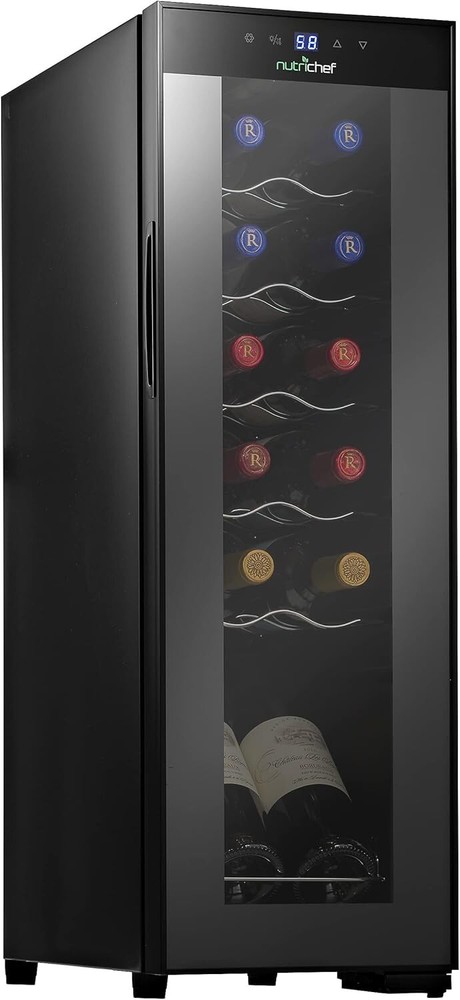 White & Red Cooler-Freestanding Countertop Compact Mini Wine Fridge Chiller 12 Bottle Capacity, Digital Control, Glass Door, Black PERFECT WINE STORAGE: With its 12 bottle storage capacity, this wine cooler unit is perfect for chilling and storing 12 bottles of red or white wine. Equipped with an accurate precision compressor cooling technology, adjustable temperature control, integrated LED lights and built in circulation fan and ventilation grill COMPACT & DECORATIVE DESIGN: With its reinforced glass door with air tight seal, this 12 bottle electric beverage refrigerator gives you a compact and modern design perfect for your living room, home office, or kitchen. It has a freestanding design for floor, table or countertop placement PERFECT IDEAL TEMPERATURE – Control the exact temperature of your electric wine cabinet for short & long term in a consistent stable temp environment with an adjustable digital touch-button display for Celsius or Fahrenheit. ( Temperature Range: 41 - 64° ) ULTRA QUIET OPERATION: Equipped with an advanced cooling system that will keep your beverages at the right temperature without making a noise GET IT WITH CONFIDENCE: This premium wine cooling unit is backed by a 1 quality of complete satisfaction. This way you can rest assured that your precious wine collection will remain safe and protected for s to come. With nothing to lose, order yours today and chill your wines in style Features: Wine Chilling Refrigerator Cooler Compact Freestanding Wine Cellar Style (12) Wine Bottle Capacity Built-in Compressor Cooling Technology Simple Electric Plug-in Design Adjustable Temperature Settings Digital Soft-Touch Button Control Panel Interior LED Light Illumination Control Silent, Ultra-Quiet Operation Built-in Circulation Fan & Ventilation Grill Reinforced Glass Door with Air-Tight Seal Celsius and Fahrenheit Unit Selectable (°C/°F) Button-Activated Child Safety Auto-Lock Function Integrated Door Handle for a Smooth Front Surface Includes Contoured, Polished Chrome Wine Racks Bottom Tall Shelf for Standing Wine Bottle Storage Free-Standing Design for Floor, Table or Countertop Placement.