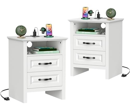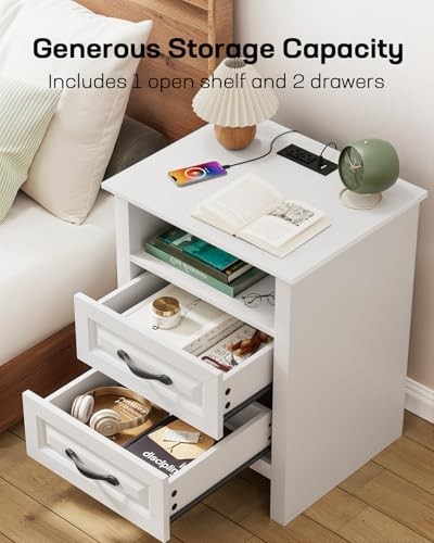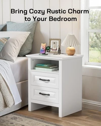 Return Policy Fast Delivery Trusted seller Nightstand Set of 2, Night Stand with Charging Station, Farmhouse Bedside Table with 2 Drawers, Open Shelf, Rustic End Table Storage Cabinet for Bedroom, White Product Description Versatile Nightstand for Many Space - The farmhouse nightstand set of 2 brings rustic charm to any room. As a bedside table it holds your lamp, phone, or book and as a sofa side table its ideal for resting coffee cups or magazines. The rustic nightstand with timeless design fits effortlessly into any space, enhancing your home's farmhouse style. Bedside Table with Charging Station - The wooden nightstand with charging features two AC outlets, a USB port, and a Type-C port, making charging easy on all your devices. This bedside table set is more handy and practical. Additionally, the hidden outlet with a cable management system helps keep your bedroom or living room clutter-free. Ample Storage Drawer - The farmhouse side table for living room offers a desktop (15.7"D x 18"W ), an open compartment and 2 storage drawers. The nightstand using high-quality accessories, smooth-gliding tracks for effortless opening and closing. This ample storage space allows you to organize essentials. Enjoy easy access to your items on this nightstand with drawers. Premium Craftsmanship and Materials - This modern farmhouse nightstand is built to last and features a sleek tabletop that enhances both its visual appeal and strength. The wooden bedside table supports up to 176 lbs, and the drawer can bear 22 lbs and can easily store daily necessities. Every detail of the end table reflects the design to complement your living space. Stable Durable & Easy to Install - Built with stability in mind, our farmhouse nightstands set is made from durable wood that last. With clear, easy-to-follow instructions, this bedside table is quick and hassle-free to assemble. This 2 drawer dresser for bedroom is available in multiple colors to suit your unique style. Shipping Returns Payment Shipping Shipping is FREE to all addresses other than APO/PO boxes in the lower 48 states. All our stock ships from US-based warehouses. Shipped via USPS or UPS (depending on location and package weight) Unless stated otherwise, all orders will ship within 24-72 hours of your payment being processed. Check our feedback to see the great reviews of FAST shipping we offer. Returns Seller does not accept returns Payment We currently accept payment via eBay managed payments only. Once payment is cleared, we will dispatch your shipment within 1-3 business days. Please refer to the "Shipping" tab for more information regarding shipping speed to your destination.