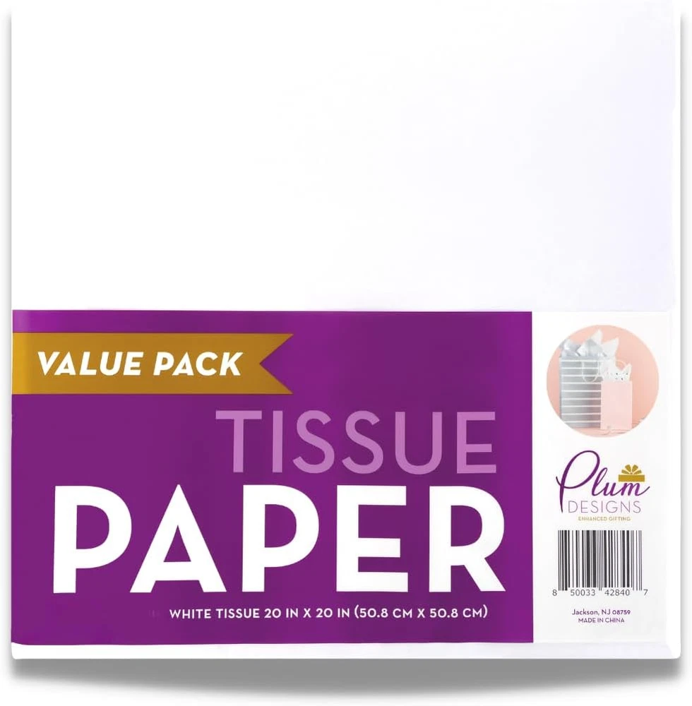 Store New Arrivals Add to Favorite View Feedback Contact White Tissue Paper for Gift Bags 20" X 20" - 60 Sheets, Tissue Paper for Packaging- 60 Sheets Acid Free Premium White Tissue Paper, Wrapping Tissue Paper - 20 X 20 Inches Description Item model number PD-42842 Sheet Size 20x20 Inches Color 60ct White Tissue Brand Plum Designs Sheet Count 60 Country of Origin India Item Weight 10.2 ounces Paper Weight 20 Recommended Uses For Product gift wrapping and bag decoration Occasion All Occasion Product Dimensions 20"L x 20"W Manufacturer Plum Designs QUALITY: Premium crisp white gift tissue paper for gift bags. Bulk Value Pack: White tissue paper in bulk for extra value. Pack includes 60 sheets of large tissue paper, 20 in x 20 in. VERSATILE: Use gift tissue paper for gift wrapping to add an elegant touch. Other uses include fancy gift bags, arts and crafts, wrapping champaign or flowers, and creative projects of all kinds! How will you use your bulk tissue paper pack? UPGRADE THAT GIFT- Quality gift bag tissue paper adds the "wow" factor that will impress the receiver of your gift. Ideal for gifts of all occasions, such as birthdays, weddings, Holiday and more. A dazzling finish to gift bags and boxes! ECO-FREINDLY: 100% Recyclable and biodegradable gift paper tissue is acid-free and easy on the environment. Product Description WHO WOULD HAVE IMAGINED GIFTING COULD BE SO FUN? Take your gift to the next level with Plum Designs gift tissue paper. Crisp white premium quality tissue paper pairs well with any gift bag to make a statement- and a lasting impression. With multiple sizes and counts available, we have a pack for every gifter! Gift tissue can be used to add a touch of class to gift bags, wrap champagne or wine bottles, or be used in a variety of craft projects. Perfect for birthdays, weddings, Holidays, or gifts for any occasion. Gift in style! ABOUT US We offer the best prices around on high quality products. Our E-store includes media such as books, movies, music and games while offering electronics, toys, sporting apparel, clothing, tools, general home, garden items and more. SHIPPING We are always working hard to ensure your package arrives as soon as possible. Please understand that some factors like weather, high postal traffic, and the performance of shipping companies are outside of our control. We offer free shipping to the lower 48 states and ship within 2 business days of payment, usually sooner. We do not accept P.O. Boxes. Please provide a physical address. RETURNS We offer a 30-Day Return Policy on items which you are not completely satisfied with. You have the option for a full-refund or an exchange of the item. No returns are available on items shipped outside of the USA. PAYMENT We accept PayPal. CONTACT US This page content is yet to come Please ad us to your favorite seller and visit again later Thank You CUSTOMER SATISFACTION We try our very best to make sure every customer is completely satisfied. If there's a problem, message us! We're happy to help.