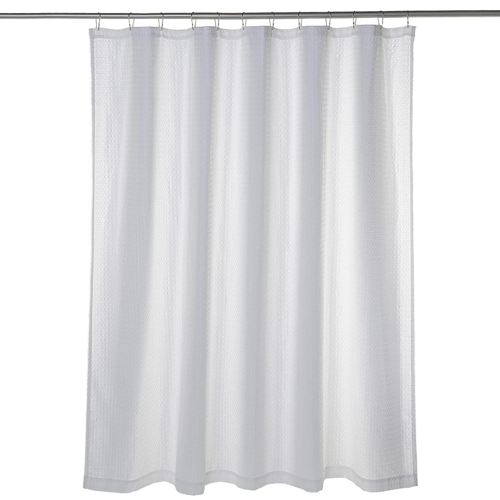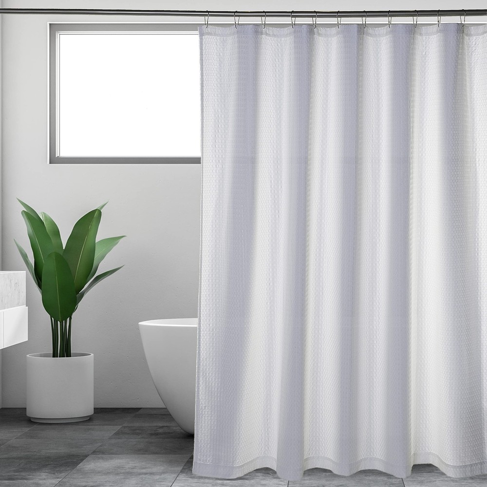 This woven waffle shower curtain is made of a durable, high-quality Oeko-Tex certified cotton polyester blend. Oeko-Tex ensures this product surpasses the highest standard of testing and helps you to make responsible decisions that protect our planet for future generations. Designed for a standard size bathtub shower for use with an interior waterproof shower curtain liner (waterproof liner not included). The waffle weave shower curtain features a fresh woven design that drapes beautifully for a timeless, clean look in your bathroom, spa or hotel. Machine wash and tumble dry for stress-free care. We’ve chosen a unique waffle weave that maintains its structure and size after washing. You don’t have to be afraid of shrinkage or deformation of the waffle fabric after laundering. Each curtain contains 12 ring holes that fit standard hooks or rings (not included) for a simple installation. OEKO-TEX CERTIFIED COTTON/POLYESTER: This woven waffle shower curtain is made of a durable, high-quality Oeko-Tex certified cotton polyester blend. Oeko-Tex ensures this product surpasses the highest standard of testing and helps you to make responsible decisions that protect our planet for future generations. 72 INCH X 72 INCH STANDARD SIZE: Designed for a standard size bathtub shower for use with an interior waterproof shower curtain liner (waterproof liner not included). SIMPLE WAFFLE DESIGN: The waffle weave shower curtain features a fresh woven design that drapes beautifully for a timeless, clean look in your bathroom, spa or hotel. CARE FOR YOUR SHOWER CURTAIN: Machine wash and tumble dry for stress-free care. We’ve chosen a unique waffle weave that maintains its structure and size after washing. You don’t have to be afraid of shrinkage or deformation of the waffle fabric after laundering. BUILT-IN RING HOLES: Each curtain contains 12 ring holes that fit standard hooks or rings (not included) for a simple installation.