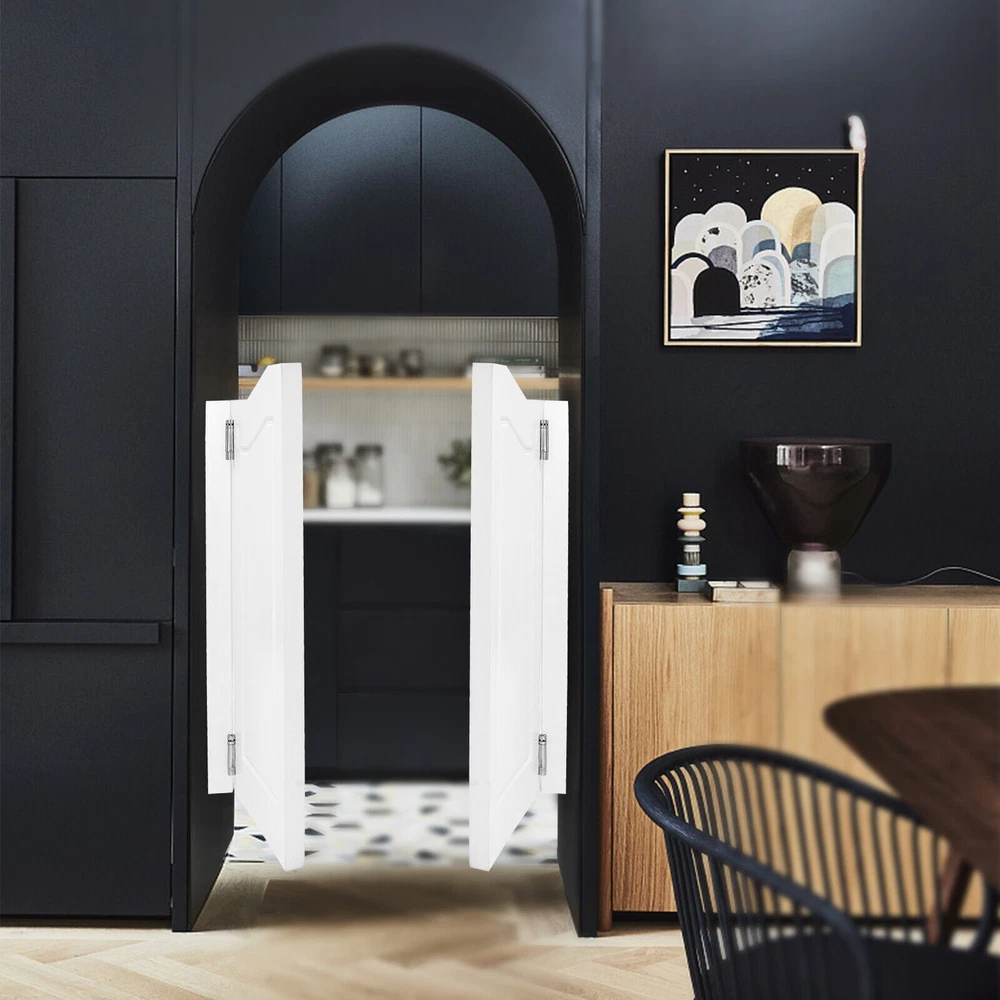 White Wood Swinging Door Wall-mounted Double Half Cafe Doors Saloon Bar W/ Hinge Description This swinging door is not only a great piece for your home but also a guardian of your private space. It has been designed to fit into your home décor. Its high-quality materials are durable and will accompany you every day. The unique hinge makes the opening and closing of the door silent and smooth without occupying space. It creates a quiet corner for you and creates a high-quality lifestyle. Experience it now and let the beauty meet you unexpectedly! Key Features Sturdy and Durable: The product is made of high-quality pine wood, using paint spraying technology, with high strength, wear resistance, and long service life. Smooth Opening and Closing: The hinges have a gravity return and positioning function that allows the door to open 180° in inward and outward directions and close automatically. By adjusting the gears of the hinge under the door, it can be positioned and rebounded in the corresponding position, giving you a comfortable experience. Useful Assistant: It is an entrance door to provide privacy for your bar counters, corridors, gardens, etc., isolating them from outside disturbances. It can also be used to divide the space into different functional areas, making the layout logical and practical. Beautifully Decorated: The simple white appearance with smooth curved lines and border embellished patterns makes this product full of Scandinavian style, which can match most home styles and enhance your life's happiness. Easy to Clean: The smooth surface and simple structure allow you to easily remove dust from the surface of the product with a towel. Easy Installation: Simple construction and a full complement of accessories make it easy to install this product and have fun doing it. Nice Gift: This practical and beautiful product is a great holiday or housewarming gift for family, friends, and colleagues so that they can enjoy a more convenient and quality life. Customer Service: We aim to provide high-quality products and services. If you have any questions, please feel free to contact us. We will reply as soon as possible and solve the problem for you. Details Practical Wrenchs: They save time in finding additional tools for your installation. Smooth Edge: The rounded and smooth edges not only add to the aesthetics of the product but also improve the safety of use. Application It is suitable for cafes, shopping malls, restaurants, bars, libraries, cash registers, reception rooms, clubs, living rooms, balconies, terraces, corridors, entrances, wine cellar entrances, kitchen entrances, etc. as a fence door, an entrance door, or a partition door. How to Install Hinge 1. Insert the wrench into the hole. 2. Adjust the closing speed by adjusting the elasticity of the hinge. 3. Insert the elastic nail into the side hole. 4. Adjust the elasticity of the other side in the same way. Specifications Color: White Style: Modern Pattern: Border Pattern Material: Pine Wood Process: Paint Spraying Assembly Required: Yes Number of Doors: 2 Rotation Angle: 180° (Inward and Outward) Door Thickness: 3.5cm/ 1.38 in Movable Door Panels Width: 35.5cm/ 13.98 in Fixed Door Panels Width: 5cm/ 1.97 in Overall Product Size (L*H): 81*106.5cm/ 31.89*41.93 in Package Size: 110*45*10cm/ 43.31*17.72*3.94 in Gross Weight: 16kg/35.27 lbs Package Included 1Pair* Swinging Doors 4* Hinges Other Accessories for Installation Notes Please measure your door opening and select the door size closest to your opening width. For ease of installation, the size of the door opening needs to be slightly larger than the overall width of the product. Please allow the slight color difference caused by the shooting light and 1-3cm error due to manual measurement, and make sure you do not mind before you order. Payment Delivery details Terms of sales About us Contact us Payment We accept ebay payment 。 Fees such as import duties, taxes are not included in the item price or shipping costs. These charges are the buyer's responsibility. Delivery details Shipping: 2-9 working days to: USA Terms of sales We maintain high standards of excellence and strive for hundred percent customer satisfaction. Feedback is very important to us. We hope that you contact us immediately before you give neutral or negative feedback, so that we can address your concerns. It is impossible to address issues if we do not know about them! About us Your satis faction is our ultimate goal. We work hard to earn your trust and future business. Our certified technicians have tested each item before shipping. The unit comes with 1 year limited warranty on all manufacturing defects. a) If you receive a defective item, you may return it or ask for a discount. Please contact us within 14 days after you receive the package. b) What you returned must be intact and in its original packaging as re? u. Customer is responsible for shipping costs of the returned item. c) We will cover the cost of shipping back t with the shipping rate indicated in the registration page. We will send you a new unit or refund the full payment you paid. Thank you. Contact us Business Hour Business Hour: Monday To Friday: 8:30 AM to 5:00 PM (Beijing China time) Due to time zones, our reply to your questions may not be immediately. But within above working time, we will reply your email within 24 hours. If it's non-workdays, please kindly be patient and wait till Monday. Please contact us with ebay message. Please feel free to contact us if you have any questions. Monday To Friday: 8:30 AM to 5:00 PM (Beijing China time) Due to time zones, our reply to your questions may not be immediately. But within above working time, we will reply your email within 24 hours. If it's non-workdays, please kindly be patient and wait till Monday. Please contact us with ebay message. Please feel free to contact us if you have any questions. Features: Fast shipping from US Warehouse Brand Unbranded
