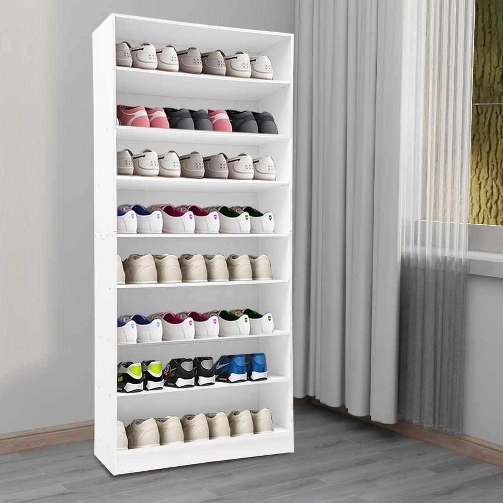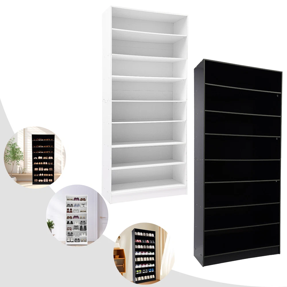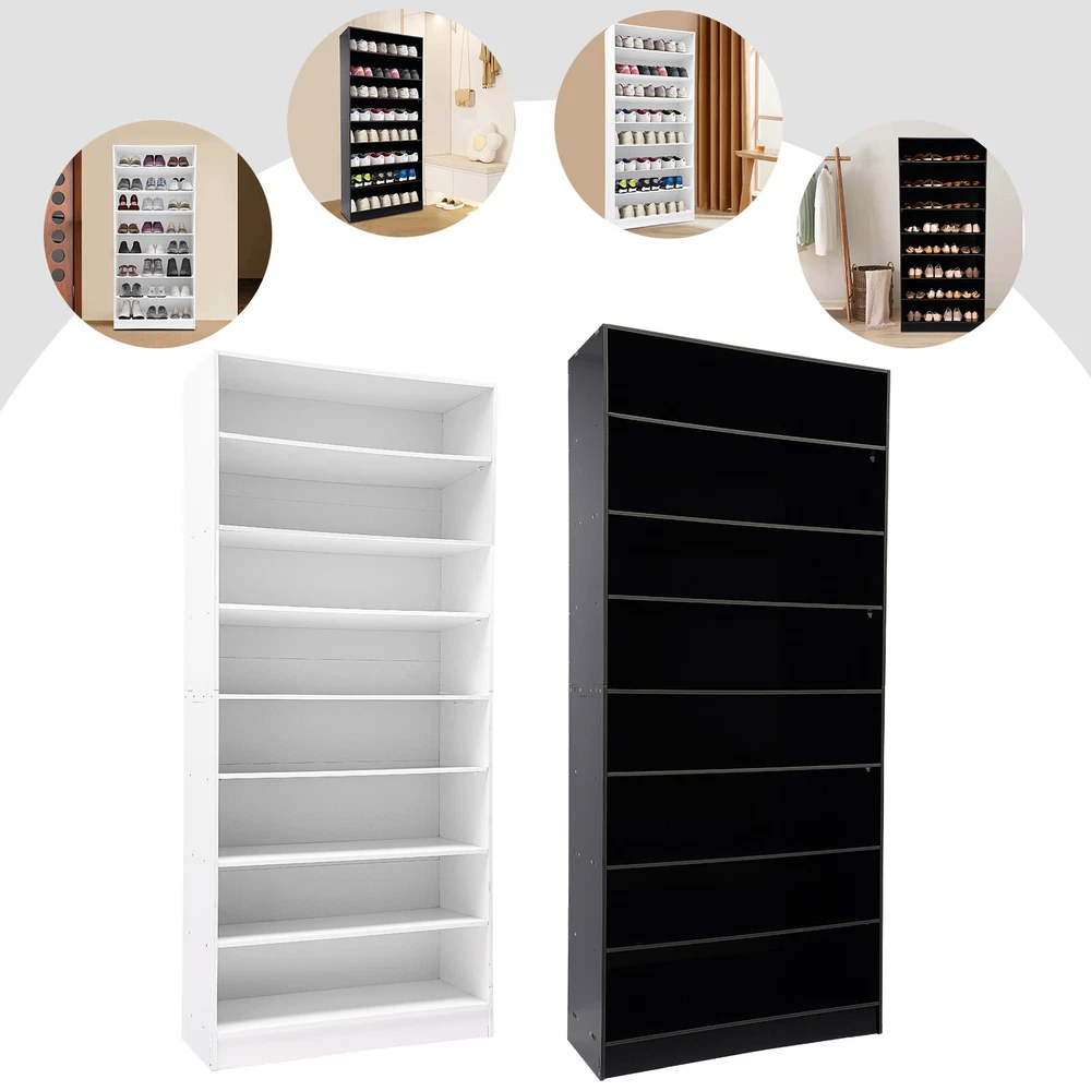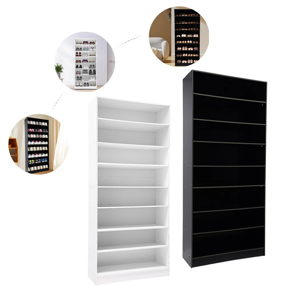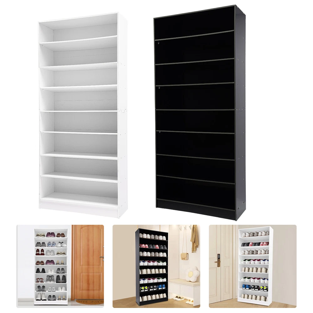 Description In our daily life, a neat and organized space can make us feel relaxed and happy. The feeling of coming home starts from entering the door and changing shoes. Look at our shoe storage cabinet made of high-quality PVC wood plastic board and mesh foam with a PVC co-extruded layer process. With its large capacity and elegant appearance, this item makes you feel warm, giving you a sense of pleasure and comfort from the moment you walk in the door. Key Features Build to Last: It is made of high-quality PVC wood plastic board and mesh foam with a PVC co-extruded layer process, which makes it strong and durable, not easy to deform, so you can use it with peace of mind in your daily life. Large Capacity: With eight tiers of shoe storage and room for 4 pairs of regular shoes per tier, this product is big enough for a family's shoe storage needs. Strong Load-bearing Capacity: The premium materials and rectangular structure allow to withstand up to 110.23lbs without collapsing, giving you a piece of mind. Shoe Storage Assistant: It cleverly integrates shoe storage into life, placing it at the doorway to store your messy shoes, making it pleasing to the eyes as soon as you open the door, and bringing you an organized lifestyle. Thoughtful Design: The open design allows you to see your shoes at a glance while still allowing for effective ventilation. You can also change the tier spacing by removing the tiers to fit different sized shoes and items. Space Saving: It utilizes vertical space wisely and has a small footprint(31.5*11.81 inches), so this cabinet won't take up much space in the room. Elegant Appearance: The sleek black finish and simple structure create a touch of elegance and casualness. It blends well with a variety of interior styles, bringing stylish functionality and aesthetics to your space. Easy to Install: A full range of accessories, a detailed English assembly diagram and simple construction allow you to install and use quickly. Hassle-free Cleaning: Thanks to its smooth surface and simple structure, you can easily clean it with water and a rag (not included). Ideal Gift : Beautiful appearance and practical function make it a nice housewarming gift for your family and friends. Practical Gloves: They make installation quicker and protect your hands from scratches. Sandpaper: It allows you to grind the surface of the product to make it polished and smooth. Mesh Foam Non-slip Pads: They stabilize that product well and won't scratch the floor. Application It can be used in the foyer, living room, porch, corridor, and other places for storing shoes, trainers, sandals, sundries, towels, flower pots, and so on. Specifications Material: PVC Wood Plastic Board, Mesh Foam Process: PVC Co-extruded Layer Style: Modern Color: White/Black Mount Type: Freestanding Product Care Instructions: Wipe with Damp Cloth Shape: Rectangular Assembly Required: Yes Number of Tiers: 8 Number of Compartments: 8 Number of Shoes Applicable Each Tier: 4 Pairs Overall Load-bearing Capacity: 50kg/110.23lbs Gross Weight: 17kg/37.48lbs Net Weight: 16kg/35.27lbs Each Compartment Size(L*H): 77*19cm/30.31*7.48in Overall Product Size: 80*30*178.7cm/31.5*11.81*70.35in Package Size: 95*46*15cm/37.4*18.11*5.91in Package Included 1*Shoe Storage Cabinet 1 Pair*Gloves 1*Sandpaper 1*English Assembly Diagram 1*Schematic Diagram of Sandpaper Grinding All Accessories for Assembly Notes Please confirm the installation dimensions before purchasing. Please note that this product does not include display items such as shoes. Please note that the number of shoes that can be stored will vary depending on the size and height of the shoes. Please wear the glove (included) when assembling. Please allow the slight color difference caused by the shooting light and 1-3cm error due to manual measurement, and make sure you do not mind before you order. Payment Delivery details Terms of sales About us Contact us Payment We accept ebay payment 。 Fees such as import duties, taxes are not included in the item price or shipping costs. These charges are the buyer's responsibility. Delivery details Shipping: 2-9 working days to: USA Terms of sales We maintain high standards of excellence and strive for hundred percent customer satisfaction. Feedback is very important to us. We hope that you contact us immediately before you give neutral or negative feedback, so that we can address your concerns. It is impossible to address issues if we do not know about them! About us Your satis faction is our ultimate goal. We work hard to earn your trust and future business. Our certified technicians have tested each item before shipping. The unit comes with 1 year limited warranty on all manufacturing defects. a) If you receive a defective item, you may return it or ask for a discount. Please contact us within 14 days after you receive the package. b) What you returned must be intact and in its original packaging as re? u. Customer is responsible for shipping costs of the returned item. c) We will cover the cost of shipping back t with the shipping rate indicated in the registration page. We will send you a new unit or refund the full payment you paid. Thank you. Contact us Business Hour Business Hour: Monday To Friday: 8:30 AM to 5:00 PM (Beijing China time) Due to time zones, our reply to your questions may not be immediately. But within above working time, we will reply your email within 24 hours. If it's non-workdays, please kindly be patient and wait till Monday. Please contact us with ebay message. Please feel free to contact us if you have any questions. Monday To Friday: 8:30 AM to 5:00 PM (Beijing China time) Due to time zones, our reply to your questions may not be immediately. But within above working time, we will reply your email within 24 hours. If it's non-workdays, please kindly be patient and wait till Monday. Please contact us with ebay message. Please feel free to contact us if you have any questions. Brand Unbranded Item Height 70.3