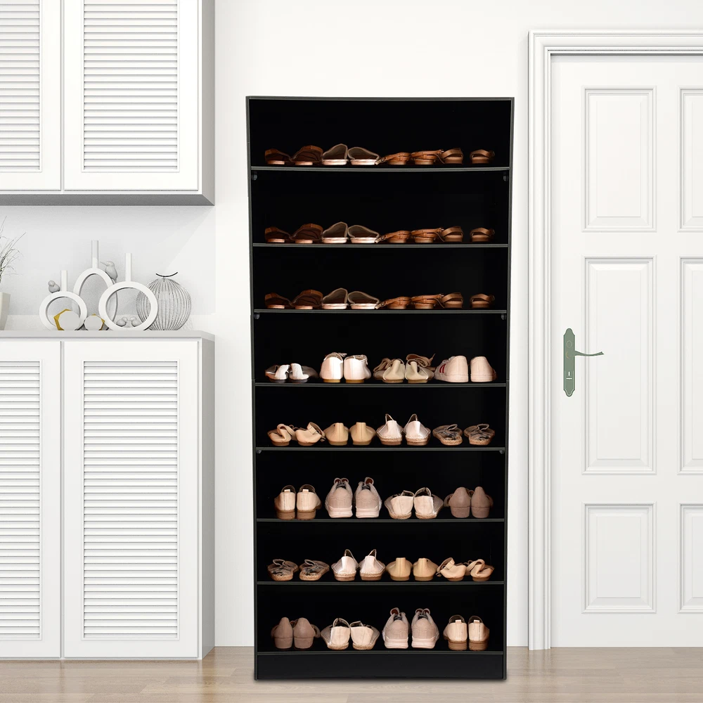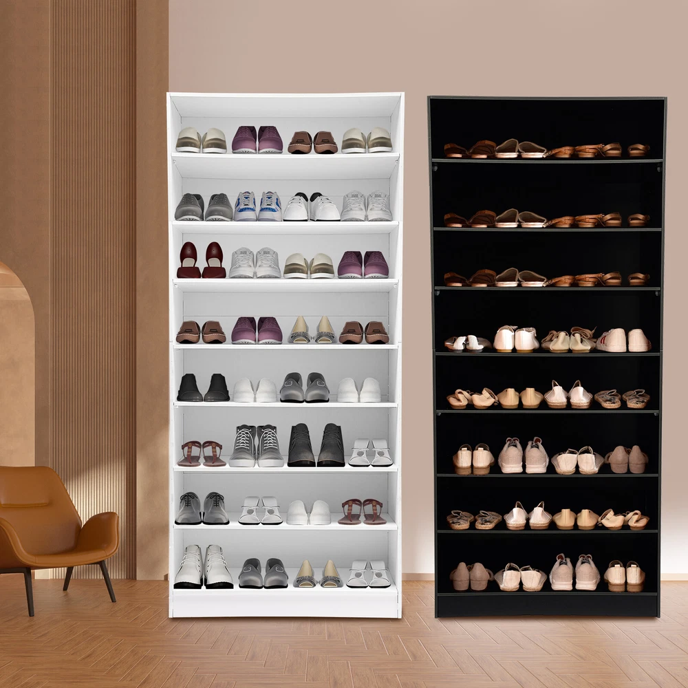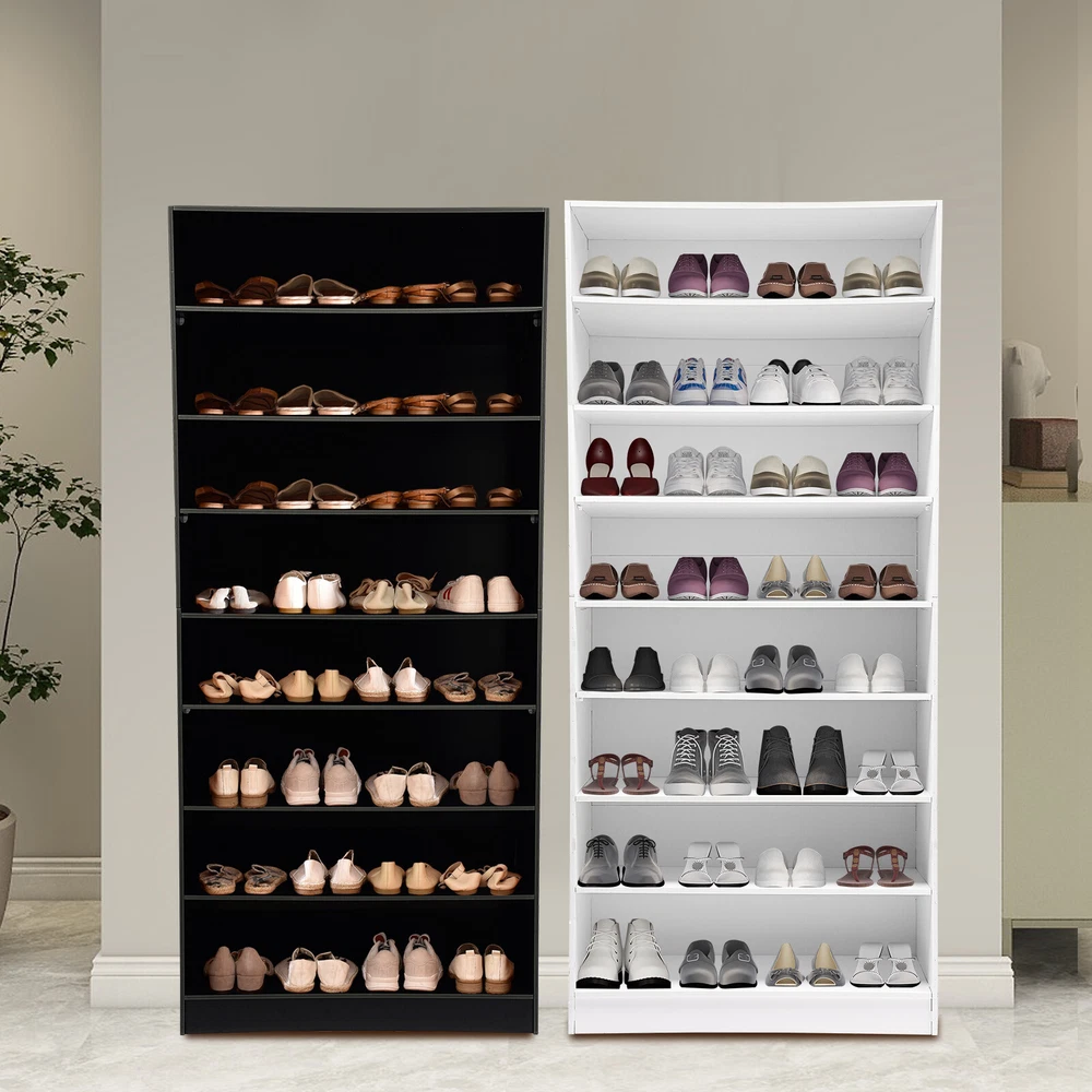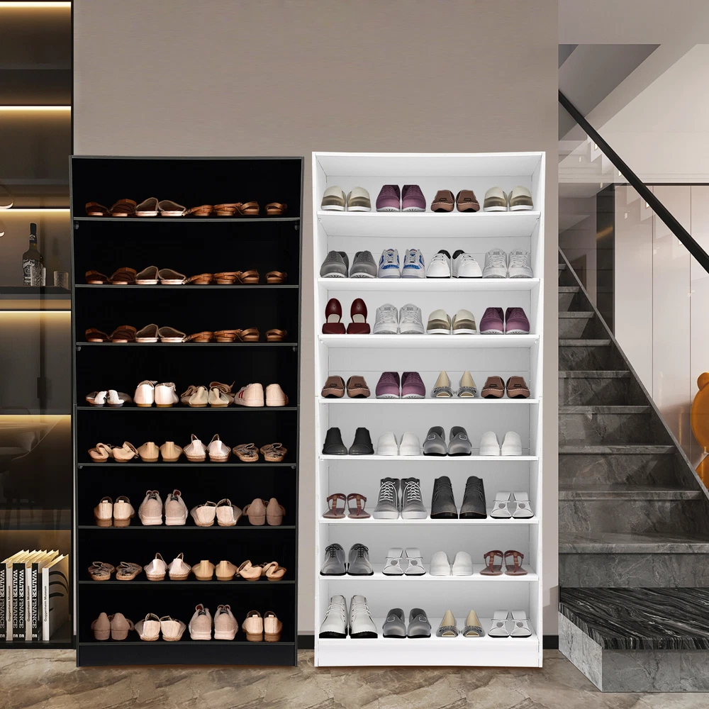 Description In our daily life, a neat and organized space can make us feel relaxed and happy. The feeling of coming home starts from entering the door and changing shoes. Look at our shoe storage cabinet made of high-quality PVC wood plastic board and mesh foam with a PVC co-extruded layer process. With its large capacity and elegant appearance, this item makes you feel warm, giving you a sense of pleasure and comfort from the moment you walk in the door. Key Features Build to Last: It is made of high-quality PVC wood plastic board and mesh foam with a PVC co-extruded layer process, which makes it strong and durable, not easy to deform, so you can use it with peace of mind in your daily life. Large Capacity: With eight tiers of shoe storage and room for 4 pairs of regular shoes per tier, this product is big enough for a family's shoe storage needs. Strong Load-bearing Capacity: The premium materials and rectangular structure allow to withstand up to 110.23lbs without collapsing, giving you a piece of mind. Shoe Storage Assistant: It cleverly integrates shoe storage into life, placing it at the doorway to store your messy shoes, making it pleasing to the eyes as soon as you open the door, and bringing you an organized lifestyle. Thoughtful Design: The open design allows you to see your shoes at a glance while still allowing for effective ventilation. You can also change the tier spacing by removing the tiers to fit different sized shoes and items. Space Saving: It utilizes vertical space wisely and has a small footprint(31.5*11.81 inches), so this cabinet won't take up much space in the room. Elegant Appearance: The sleek black finish and simple structure create a touch of elegance and casualness. It blends well with a variety of interior styles, bringing stylish functionality and aesthetics to your space. Easy to Install: A full range of accessories, a detailed English assembly diagram and simple construction allow you to install and use quickly. Hassle-free Cleaning: Thanks to its smooth surface and simple structure, you can easily clean it with water and a rag (not included). Ideal Gift : Beautiful appearance and practical function make it a nice housewarming gift for your family and friends. Practical Gloves: They make installation quicker and protect your hands from scratches. Sandpaper: It allows you to grind the surface of the product to make it polished and smooth. Mesh Foam Non-slip Pads: They stabilize that product well and won't scratch the floor. Application It can be used in the foyer, living room, porch, corridor, and other places for storing shoes, trainers, sandals, sundries, towels, flower pots, and so on. Specifications Material: PVC Wood Plastic Board, Mesh Foam Process: PVC Co-extruded Layer Style: Modern Color: White/Black Mount Type: Freestanding Product Care Instructions: Wipe with Damp Cloth Shape: Rectangular Assembly Required: Yes Number of Tiers: 8 Number of Compartments: 8 Number of Shoes Applicable Each Tier: 4 Pairs Overall Load-bearing Capacity: 50kg/110.23lbs Gross Weight: 17kg/37.48lbs Net Weight: 16kg/35.27lbs Each Compartment Size(L*H): 77*19cm/30.31*7.48in Overall Product Size: 80*30*178.7cm/31.5*11.81*70.35in Package Size: 95*46*15cm/37.4*18.11*5.91in Package Included 1*Shoe Storage Cabinet 1 Pair*Gloves 1*Sandpaper 1*English Assembly Diagram 1*Schematic Diagram of Sandpaper Grinding All Accessories for Assembly Notes Please confirm the installation dimensions before purchasing. Please note that this product does not include display items such as shoes. Please note that the number of shoes that can be stored will vary depending on the size and height of the shoes. Please wear the glove (included) when assembling. Please allow the slight color difference caused by the shooting light and 1-3cm error due to manual measurement, and make sure you do not mind before you order. Payment Delivery details Terms of sales About us Contact us Payment We accept ebay payment 。 Fees such as import duties, taxes are not included in the item price or shipping costs. These charges are the buyer's responsibility. Delivery details Shipping: 2-9 working days to: USA Terms of sales We maintain high standards of excellence and strive for hundred percent customer satisfaction. Feedback is very important to us. We hope that you contact us immediately before you give neutral or negative feedback, so that we can address your concerns. It is impossible to address issues if we do not know about them! About us Your satis faction is our ultimate goal. We work hard to earn your trust and future business. Our certified technicians have tested each item before shipping. The unit comes with 1 year limited warranty on all manufacturing defects. a) If you receive a defective item, you may return it or ask for a discount. Please contact us within 14 days after you receive the package. b) What you returned must be intact and in its original packaging as re? u. Customer is responsible for shipping costs of the returned item. c) We will cover the cost of shipping back t with the shipping rate indicated in the registration page. We will send you a new unit or refund the full payment you paid. Thank you. Contact us Business Hour Business Hour: Monday To Friday: 8:30 AM to 5:00 PM (Beijing China time) Due to time zones, our reply to your questions may not be immediately. But within above working time, we will reply your email within 24 hours. If it's non-workdays, please kindly be patient and wait till Monday. Please contact us with ebay message. Please feel free to contact us if you have any questions. Monday To Friday: 8:30 AM to 5:00 PM (Beijing China time) Due to time zones, our reply to your questions may not be immediately. But within above working time, we will reply your email within 24 hours. If it's non-workdays, please kindly be patient and wait till Monday. Please contact us with ebay message. Please feel free to contact us if you have any questions. Brand Unbranded Item Height 70.3