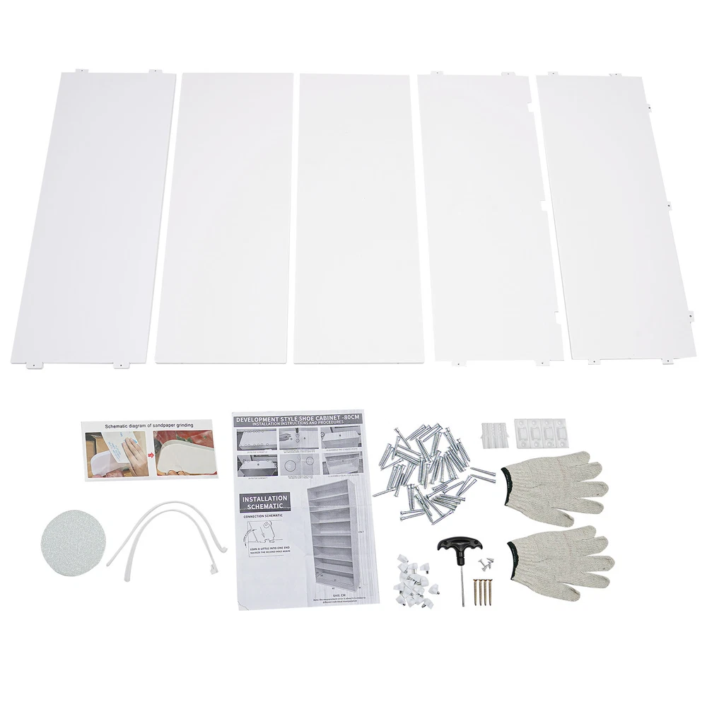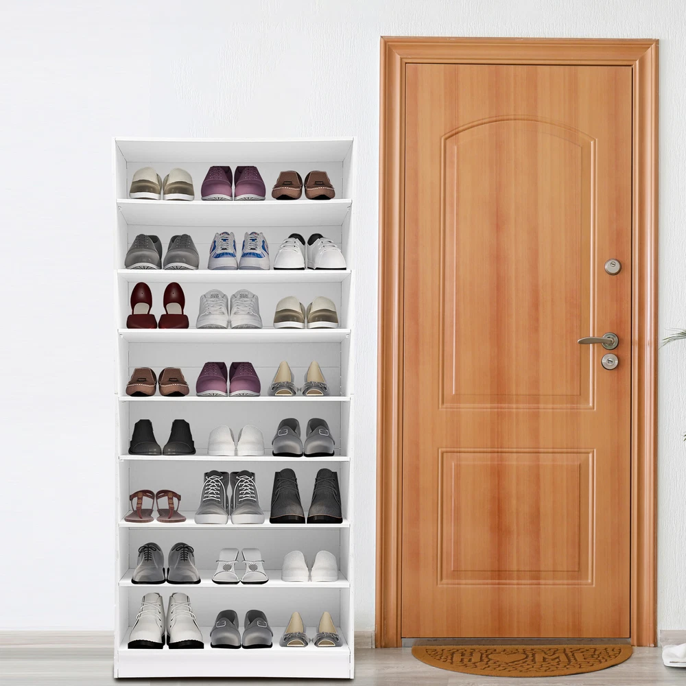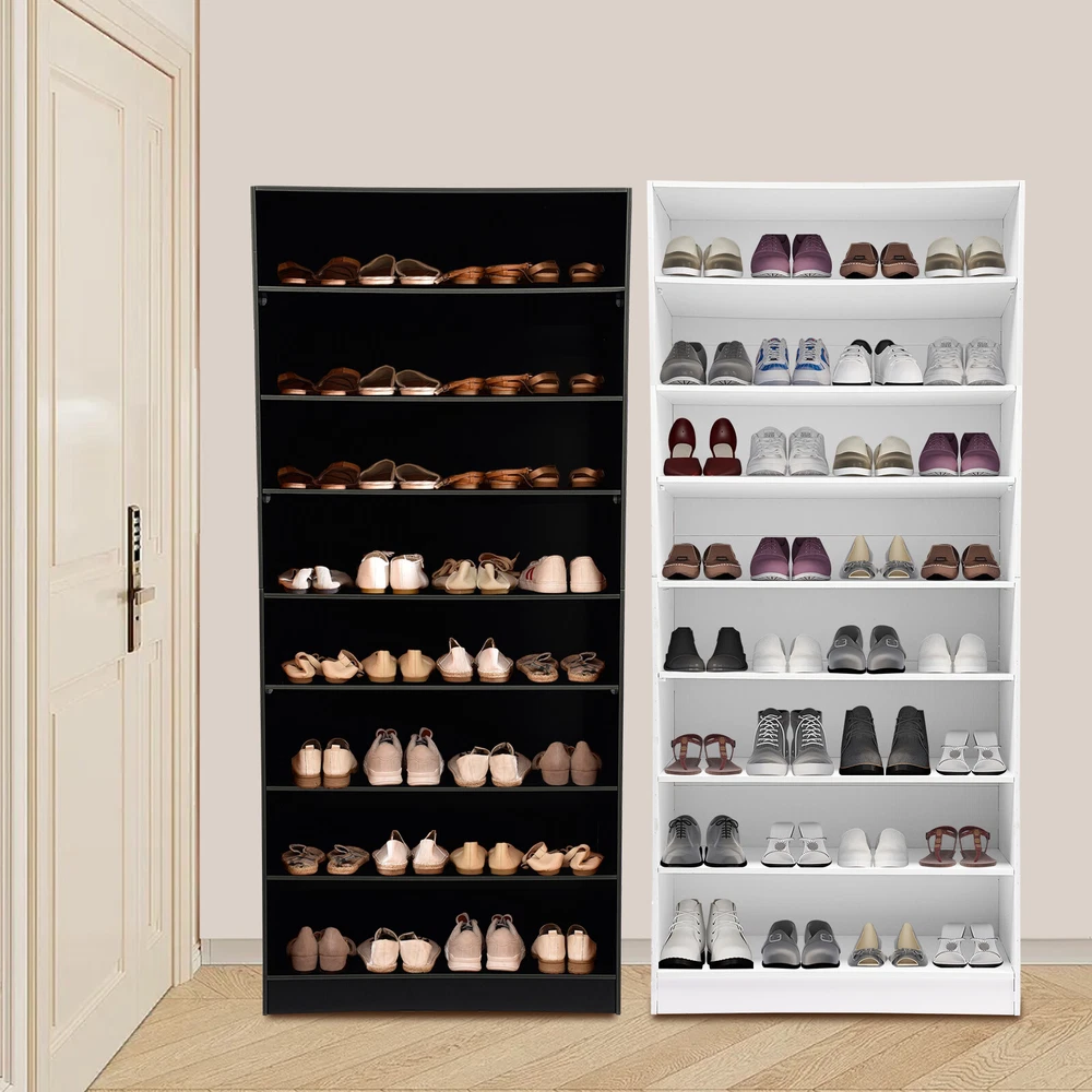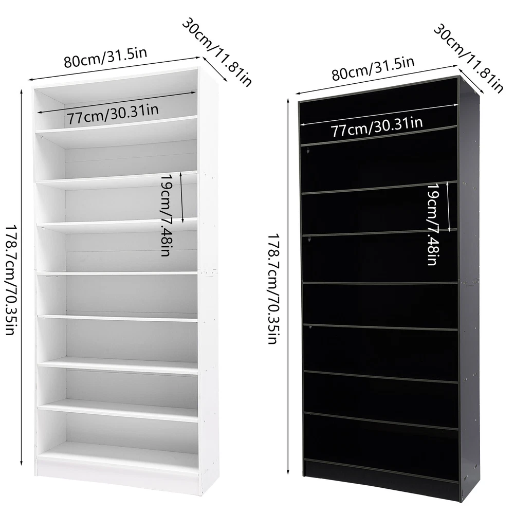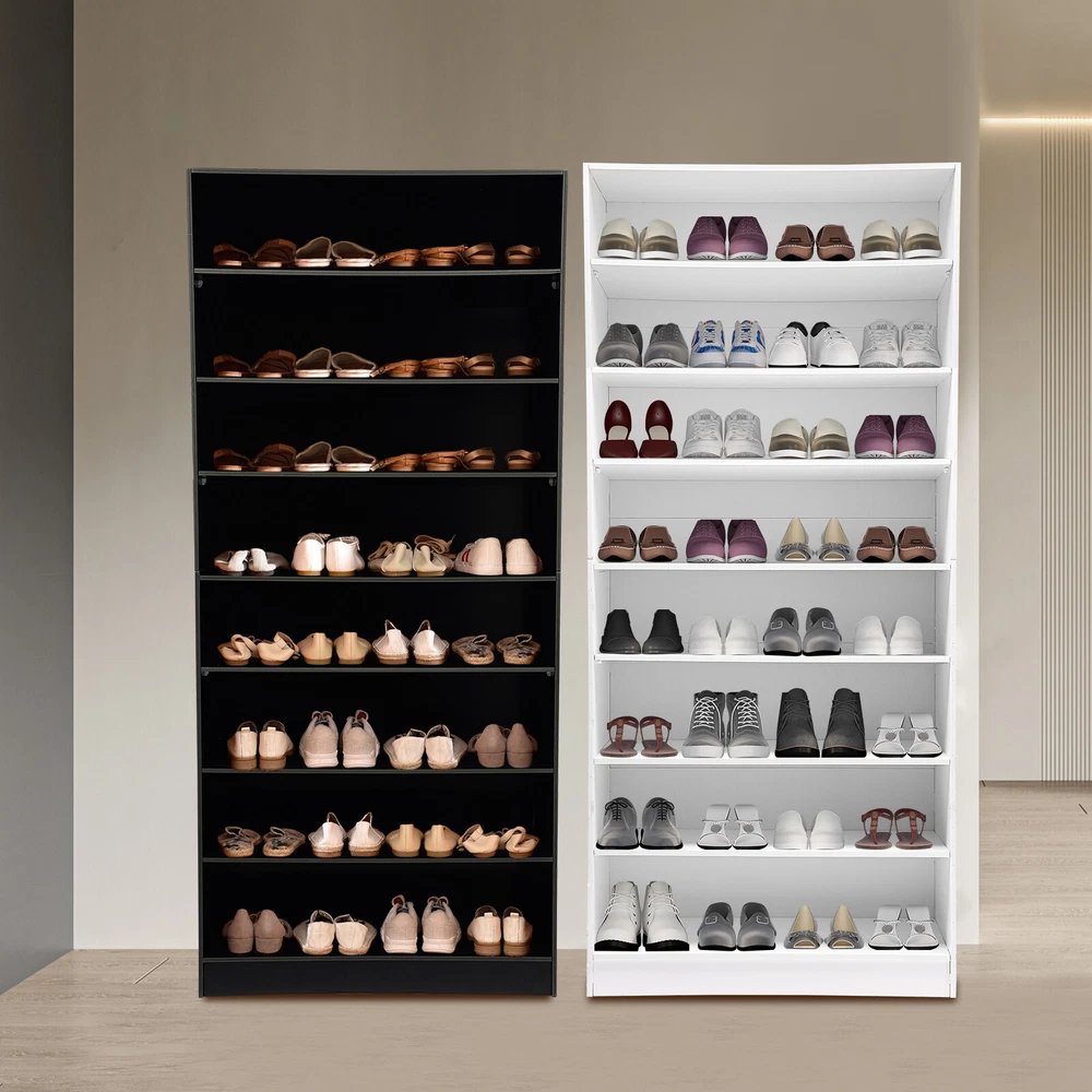 Description In our daily life, a neat and organized space can make us feel relaxed and happy. The feeling of coming home starts from entering the door and changing shoes. Look at our shoe storage cabinet made of high-quality PVC wood plastic board and mesh foam with a PVC co-extruded layer process. With its large capacity and elegant appearance, this item makes you feel warm, giving you a sense of pleasure and comfort from the moment you walk in the door. Key Features Build to Last: It is made of high-quality PVC wood plastic board and mesh foam with a PVC co-extruded layer process, which makes it strong and durable, not easy to deform, so you can use it with peace of mind in your daily life. Large Capacity: With eight tiers of shoe storage and room for 4 pairs of regular shoes per tier, this product is big enough for a family's shoe storage needs. Strong Load-bearing Capacity: The premium materials and rectangular structure allow to withstand up to 110.23lbs without collapsing, giving you a piece of mind. Shoe Storage Assistant: It cleverly integrates shoe storage into life, placing it at the doorway to store your messy shoes, making it pleasing to the eyes as soon as you open the door, and bringing you an organized lifestyle. Thoughtful Design: The open design allows you to see your shoes at a glance while still allowing for effective ventilation. You can also change the tier spacing by removing the tiers to fit different sized shoes and items. Space Saving: It utilizes vertical space wisely and has a small footprint(31.5*11.81 inches), so this cabinet won't take up much space in the room. Elegant Appearance: The sleek black finish and simple structure create a touch of elegance and casualness. It blends well with a variety of interior styles, bringing stylish functionality and aesthetics to your space. Easy to Install: A full range of accessories, a detailed English assembly diagram and simple construction allow you to install and use quickly. Hassle-free Cleaning: Thanks to its smooth surface and simple structure, you can easily clean it with water and a rag (not included). Ideal Gift : Beautiful appearance and practical function make it a nice housewarming gift for your family and friends. Practical Gloves: They make installation quicker and protect your hands from scratches. Sandpaper: It allows you to grind the surface of the product to make it polished and smooth. Mesh Foam Non-slip Pads: They stabilize that product well and won't scratch the floor. Application It can be used in the foyer, living room, porch, corridor, and other places for storing shoes, trainers, sandals, sundries, towels, flower pots, and so on. Specifications Material: PVC Wood Plastic Board, Mesh Foam Process: PVC Co-extruded Layer Style: Modern Color: White/Black Mount Type: Freestanding Product Care Instructions: Wipe with Damp Cloth Shape: Rectangular Assembly Required: Yes Number of Tiers: 8 Number of Compartments: 8 Number of Shoes Applicable Each Tier: 4 Pairs Overall Load-bearing Capacity: 50kg/110.23lbs Gross Weight: 17kg/37.48lbs Net Weight: 16kg/35.27lbs Each Compartment Size(L*H): 77*19cm/30.31*7.48in Overall Product Size: 80*30*178.7cm/31.5*11.81*70.35in Package Size: 95*46*15cm/37.4*18.11*5.91in Package Included 1*Shoe Storage Cabinet 1 Pair*Gloves 1*Sandpaper 1*English Assembly Diagram 1*Schematic Diagram of Sandpaper Grinding All Accessories for Assembly Notes Please confirm the installation dimensions before purchasing. Please note that this product does not include display items such as shoes. Please note that the number of shoes that can be stored will vary depending on the size and height of the shoes. Please wear the glove (included) when assembling. Please allow the slight color difference caused by the shooting light and 1-3cm error due to manual measurement, and make sure you do not mind before you order. Payment Delivery details Terms of sales About us Contact us Payment We accept ebay payment 。 Fees such as import duties, taxes are not included in the item price or shipping costs. These charges are the buyer's responsibility. Delivery details Shipping: 2-9 working days to: USA Terms of sales We maintain high standards of excellence and strive for hundred percent customer satisfaction. Feedback is very important to us. We hope that you contact us immediately before you give neutral or negative feedback, so that we can address your concerns. It is impossible to address issues if we do not know about them! About us Your satis faction is our ultimate goal. We work hard to earn your trust and future business. Our certified technicians have tested each item before shipping. The unit comes with 1 year limited warranty on all manufacturing defects. a) If you receive a defective item, you may return it or ask for a discount. Please contact us within 14 days after you receive the package. b) What you returned must be intact and in its original packaging as re? u. Customer is responsible for shipping costs of the returned item. c) We will cover the cost of shipping back t with the shipping rate indicated in the registration page. We will send you a new unit or refund the full payment you paid. Thank you. Contact us Business Hour Business Hour: Monday To Friday: 8:30 AM to 5:00 PM (Beijing China time) Due to time zones, our reply to your questions may not be immediately. But within above working time, we will reply your email within 24 hours. If it's non-workdays, please kindly be patient and wait till Monday. Please contact us with ebay message. Please feel free to contact us if you have any questions. Monday To Friday: 8:30 AM to 5:00 PM (Beijing China time) Due to time zones, our reply to your questions may not be immediately. But within above working time, we will reply your email within 24 hours. If it's non-workdays, please kindly be patient and wait till Monday. Please contact us with ebay message. Please feel free to contact us if you have any questions. Brand Unbranded Item Height 70.3