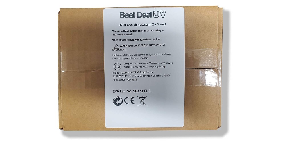 Air Purifier Whole House Uv Light in Duct for Hvac Ac (Air Conditioning) Duct Germicidal Filter + 2 replacement bulbs Product Details Color: Black Brand: D200 Product Dimensions: 8"D x 8"W x 8"H Filter Type: UV Light Controller Type: touch control Color: Black Brand: D200 Product Dimensions: 8"D x 8"W x 8"H Filter Type: UV Light Controller Type: touch control Wattage: 150 watts UPC: 684191852985 Manufacturer: Best Deal UV Item Weight: 1.68 pounds Item model number: SQUEEVI21206 Is Discontinued By Manufacturer: No Date First Available: April 4, 2017 ALL OUR PRODUCTS ARE OZONE FREE All our units have an electronic ballast and a sight glass to see if unit is on. All Our bulbs are germicidal UVC and put out 253.7NM Easy to install! bulbs are 7.5" fit for A/C 1-5 tons 2 replacement bulbs included (Total of 4 bulbs inside the box) UV LIGHT ultraviolet hvac dual lamp duct . 120v uv-c dual light for a/c duct. This is a powerful uvc unit that are rated for Air systems 1-5 tons PROUDLY DESIGNED IN USA Installation is very easy 15 min, just cut two 1.75 inch holes in your duct (template included) slip the lamp inside and attach the 4 screws (included in box), then simply plug it in with the 9 ft cord included Dimensions in Duct: 8" Power 120Volts 50/60Hz EPA Est No 96373-FL-1