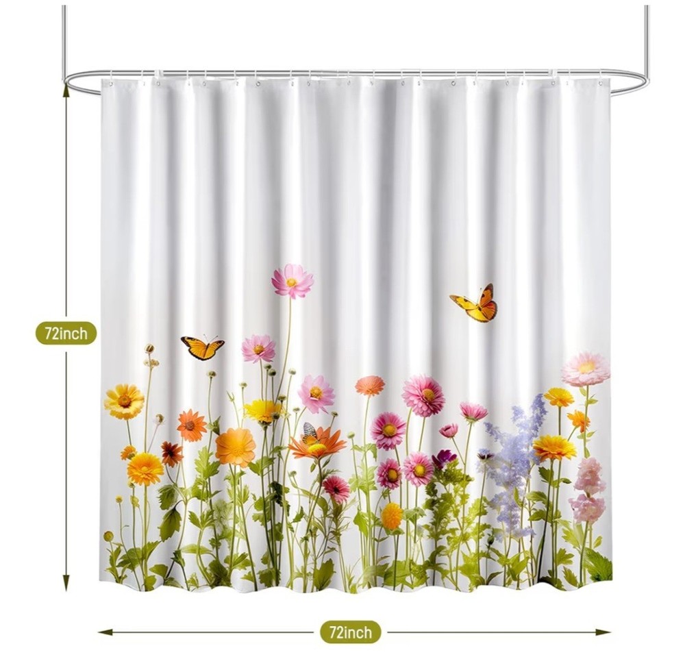 25 Curtains. Great money maker. 72" x 72" with hooks. The product is a wholesale lot of shower curtains with hooks from the brand arichomy. Made of polyester and fabric, these multicolor curtains are perfect for bathrooms. They are new and offer great potential as a retail money maker. This lot of shower curtains is a high-quality and stylish addition to any bathroom, adding a touch of color and functionality.