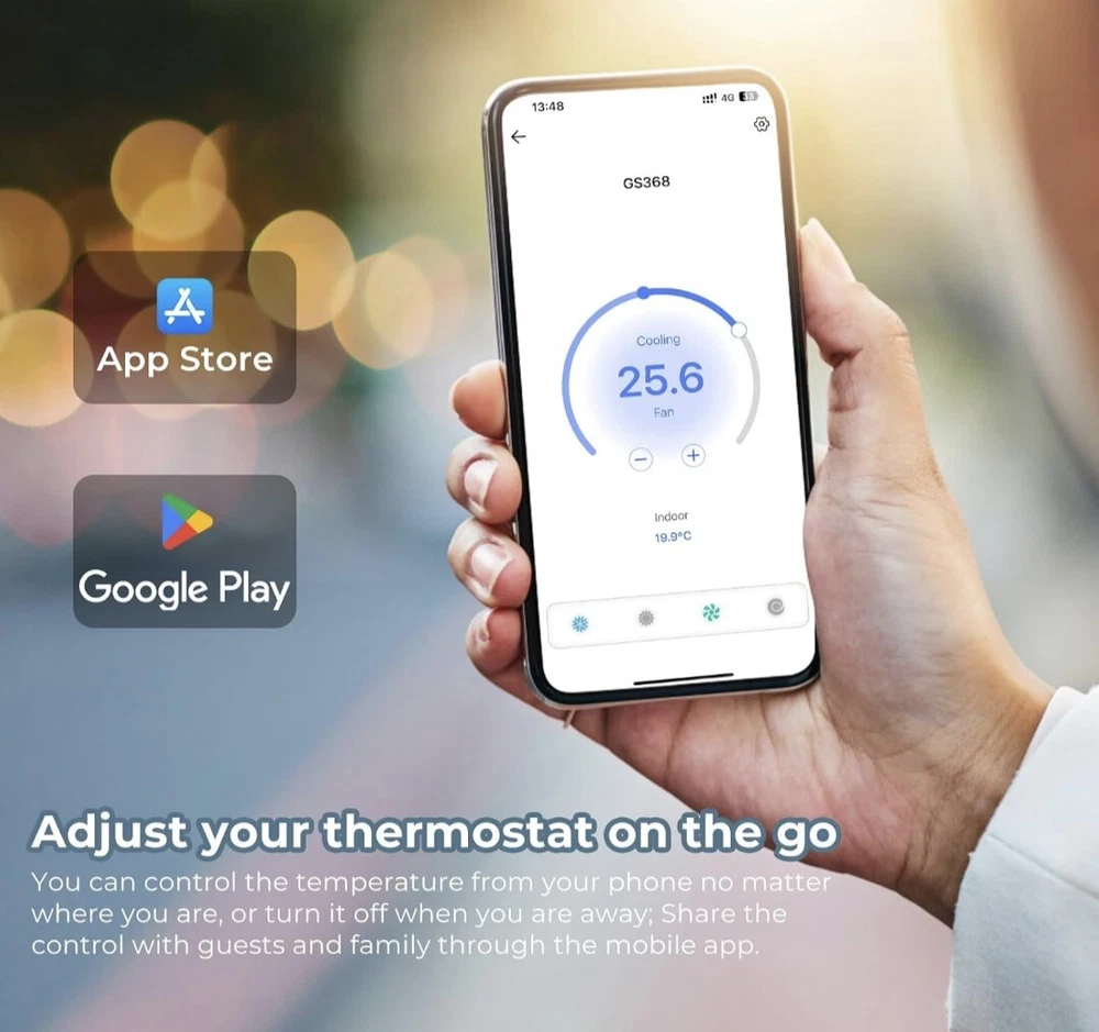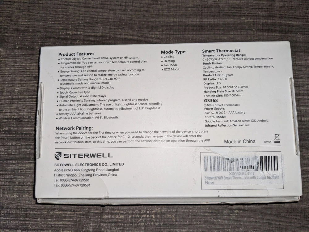 Display has minor scratches. SITERWELL Smart Thermostat for Home, WiFi Programmable Digital Thermostat, Compatible with Alexa and Google Assistant, Suitable for 24V Heat Pumps or Single Level HVAC System (C-Wire Required) TAKE CONTROL OF YOUR HOME'S TEMPERATURE: Say goodbye to constantly adjusting your thermostat and experiencing uncomfortable temperature fluctuations. With our smart thermostat, you can easily set and maintain the perfect temperature throughout the day, ensuring maximum comfort for you and your family. SAVE MONEY ON ENERGY BILLS: Worried about high energy costs? Our intelligent thermostat is designed to optimize energy usage by automatically adjusting temperature settings based on your preferences and occupancy patterns. By reducing wasted energy, you can potentially save significant amounts on your monthly energy bills. SEAMLESS INTEGRATION WITH YOUR SMART HOME: Connect our smart thermostat to your existing smart home ecosystem(Google Assistant and Amazon Alexa) and enjoy the convenience of controlling your home's temperature using voice commands or through a smartphone app. Create personalized schedules, monitor energy usage, and make adjustments even when you're away from home. EASY INSTALLATION AND COMPATIBILITY: No need to hire a professional for installation. Our smart thermostat is designed for easy DIY installation, and it's compatible with most HVAC systems. With step-by-step instructions , you'll have it up and running in no time, without any hassle. DATA PRIVACY AND SECURITY: We understand the importance of protecting your personal data. Rest assured that our smart thermostat prioritizes your privacy and employs state-of-the-art encryption protocols to safeguard your information. Your data will never be shared with third parties or used for targeted advertising.