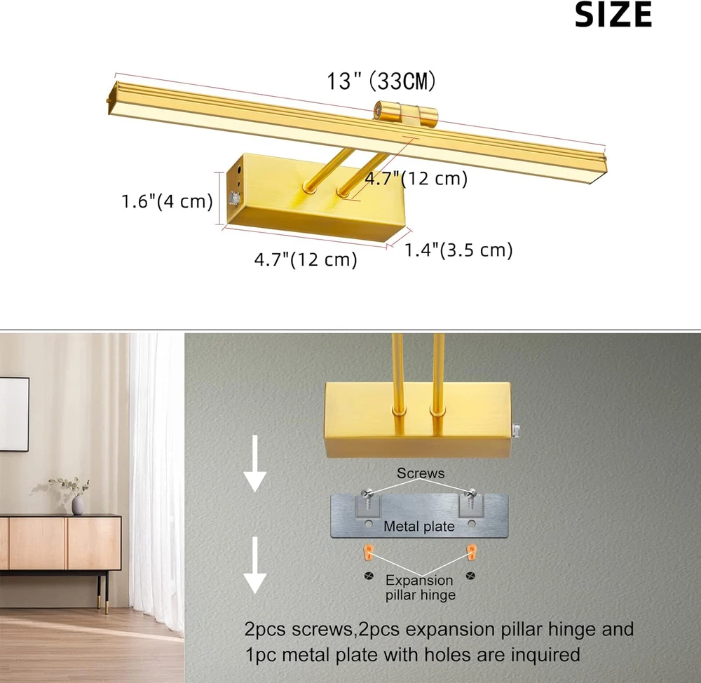 Store New Arrivals Add to Favorite View Feedback Contact Wierelss Picture Light, 13Inch Picture Light Battery Operated,Remote Control Painting Light with Timer and Dimmable, Full Metal Art Light for Display,Wall,Artwork,Portrait,Gallery (Brass) Description Item model number FC70155-AN Light Source Type LED Style American Number of Items 1 Power Source Battery Powered Fixture Type Removable Number of Light Sources 48 Control Method Remote Embellishment Metal Theme Fantasy Batteries Included? Yes Lighting Method Adjustable Mounting Type Wall Mount Controller Type Remote Control Unit Count 1.0 Count Room Type Storage Room, Bathroom, Living Room, Home Office, Game Room Assembly Required No Switch Type Touch and Remote Average Life 10 Hours Product Dimensions 13"L x 2"W x 7"H Material Metal Batteries 1 Lithium Polymer batteries required. (included) Installation Type Flush Mount Model Name WALL LIGHT Finish Type Brushed Specific Uses For Product Shop, Driveway, Pathway, Home, Walkway Color Rendering Index (CRI) 80 Indoor/Outdoor Usage Indoor Brightness 300 Lumen Country of Origin China Light Color Warm White Water Resistance Level Not Water Resistant Batteries Required? Yes Warranty Type Limited Item Weight 14.4 ounces Light fixture form Picture Connectivity Protocol Infrared Special Features Dimmable, Low Voltage Special Feature Dimmable, Low Voltage Part Number FC70155-AN Shade Color White Color Temperature 3000 Kelvin Color Brass Wattage 3 watts Bulb Base Flanged Shape Square Voltage 5 Volts (DC) Recommended Uses For Product Indoor use Shade Material Plastic Finish types Brushed Included Components Srews, Remote Control, Mounting Hardware, USB Cable Size 13" Full Metal Picture Light: Made of metal and Aluminum, 3000K warm white, rechargeable battery,300 Lumens Adjustable Painting Accent Lights - The picture light’s light tube (13 inches) can be rotated 150°to adjust the lighting direction to your desired position. Brightness Dimmable Battery Operated Picture Light - Press the "+" or "-" button on the remote to adjust the brightness level of the painting light as you wish. Auto OFF Timer Rechargeable Picture Light - Press the timer button on the remote to set the picture light to turn OFF automatically in 1,2,3,4 hours. 2 Control Way Wireless Picture Light--Manual switch with ON/DIMMABLE/OFF features, remote control with ON/TIMMER/TIMER RESET/DIMMABLE/OFF features. S Size picture light with Plate Brass finished MORE DETAILS * Material: Metal and Aluminum * Power Source: rechargeable battery * 3000K warm white LED. 1.1W, 280Lumens * Each light tube can be turned 150° up or down, rotate each light head independently to desired angle. * Installation Steps: 1. Drill two pilot holes in the location where you want to mount the picture light. Place screws (included) in pre-drilled holes. Tighten slightly until secure, but do not tighten all the way. Slide EZ Mount Bracket 2. Once you confirm that the bracket is level, tighten the screws to secure it to the wall. Take care not to over tighten. 3. To hang the picture light on the mounting bracket, align the picture light with the mounting bracket and slide the unit down. Picture light will lock into position. 4. To remove the picture light from the mounting bracket: A) Hold the picture light by the base (not light head). B) Slide the unit up. C) Once the body releases from mounting bracket, pull the unit out. PACKING LIST - 1 x Picture Light - 1 x Remote Control - 2 x Screw - 1 x User Manual ABOUT US We offer the best prices around on high quality products. Our E-store includes media such as books, movies, music and games while offering electronics, toys, sporting apparel, clothing, tools, general home, garden items and more. SHIPPING We are always working hard to ensure your package arrives as soon as possible. Please understand that some factors like weather, high postal traffic, and the performance of shipping companies are outside of our control. We offer free shipping to the lower 48 states and ship within 2 business days of payment, usually sooner. We do not accept P.O. Boxes. Please provide a physical address. For shipping outside of the continental USA, we only use eBay's Global Shipping Program.The item is shipped to KY and then sent to the rest of the world. International customers are responsible for all duties and taxes. Continue to check out in order to calculate costs for shipping the item to your country. Messages regarding eBay's Global Shipping Program MUST be directed at eBay EXCLUSIVELY. RETURNS We offer a 30-Day Return Policy on items which you are not completely satisfied with. You have the option for a full-refund or an exchange of the item. No returns are available on items shipped outside of the USA. PAYMENT We accept PayPal. CONTACT US This page content is yet to come Please ad us to your favorite seller and visit again later Thank You CUSTOMER SATISFACTION We try our very best to make sure every customer is completely satisfied. If there's a problem, message us! We're happy to help. WE ACCEPT Copyright © 2021 AutoDS. | All Rights Reserved