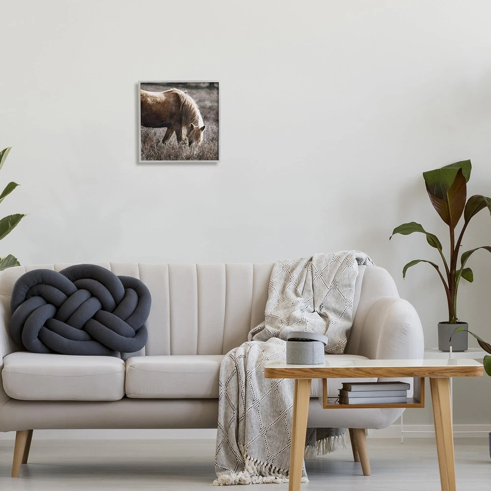 Framed Giclee Sizes Include Standard: 12 x 1.5 x 12 Large: 17 x 1.5 x 17 Oversized: 24 x 1.5 x 24 Wall Art is Ready to Hang with Hardware Free Hanging. No installation required. For Easy Set Up Lean or Layer Artwork on Shelf or Against Wall. Our giclée prints are carefully mounted on a durable MDF backing, and then perfectly finished in a 1.5 inch thick woodgrain frame. Mounted frame colors include black, gray farmhouse and white. Made In USA. Artwork Relates To: Field, Grassland, Grazing, Animal, Colt Horse, Horse, Mammal, Wildlife, Stallion, Farm, Pasture, Rural Design by LSR Design Studio