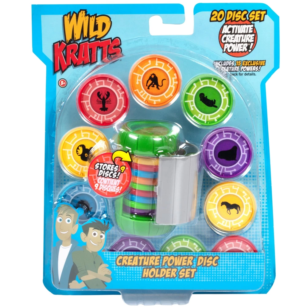 What Creature Power will you activate with this Wild Kratts toy disc set? Includes a 9 disc storage holder with 20 collectible Chris Kratt brother Creature Power activation discs in a variety of animals that run, jump, crawl, fly, climb or defend! Now, kids can Activate Creature Power and act out your favorite Chris Kratt adventures by collecting this awesome Wild Kratts Creature Power Disc Set with Holder. The toy set Includes a 9 disc storage holder with 20 collectible Chris Kratt brother Creature Power activation discs in a variety of animals that run, jump, crawl, fly, climb or defend! Activate Creature Power! Animal creature discs include: hamster, blowfish, pony, turkey, wolf, hippo, grasshopper, lobster, otter, moose, narwahl, tarsier, koala, walrus, skunk, basilisk lizard, spectacled cobra, golden snub-nosed monkey, falcon and bullfrog. A great gift for bots and girls who love Wild Kratts show series! Perfect for pretend and role play activities! Gift for Christmas, Easter, Birthdays and more! Officially licensed Wild Kratts merchandise. Disc colors may vary. For ages 3 and up. Discs work with Wild Kratts Creature Power Suits (sold separately).