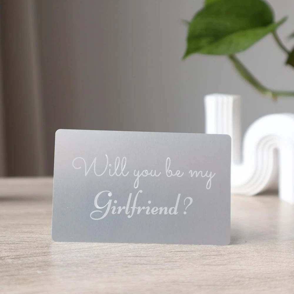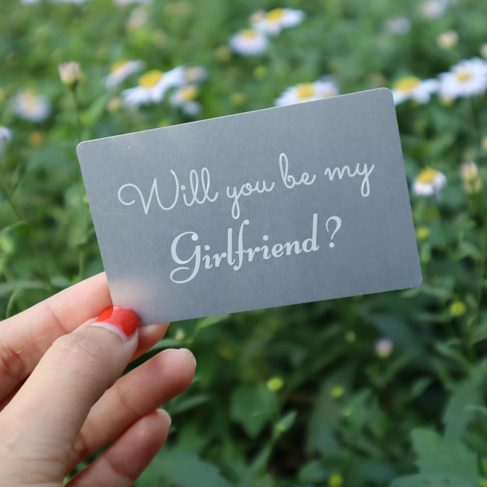 Store New Arrivals Add to Favorite View Feedback Contact Fast deliveries to the customer's home Quality customer service John Make the customers happy! Will You Be My Girlfriend?, Proposal Card for Her, Simple and Powerful, Engraved Alluminum Gray Card with Black Envelope Description I bought this card for my girlfriend and she absolutely loved it! The quality is amazing and the message inside was so sweet and personal. Definitely a unique way to propose and ask her to be my girlfriend. Heartfelt & Romantic: Features a sweet and clear Will You Be My Girlfriend? message, designed to warm her heart and make her smile. The size of this wallet insert is approximately the size of a credit card (Just 3.35' x 2.15' x 0.02'). Fits Perfectly in Any Wallet. More Than Just a Card: This is a physical token of your affection, something she can hold onto and look back on, reminding her of the day you asked. Product description The Perfect Moment Starts Here: A Proposal Card That Creates Memories Natural Brown Charm Pink Royal Blue Classic Black Elegant Red Forest Green Will You Be My Girlfriend? SPEAKS FROM THE HEART with Romance Card: The most sincere and straightforward way to express your feelings and take the next step in your relationship. Item model number CRD-8604657 Number of Items 1 Color Gray with Black envelope Material Type Metal Manufacturer Part Number CRD-8604657 Item Weight 0.16 ounces Pre-printed Will You Be My Girlfriend? Product Dimensions 3.35 x 2.15 x 0.04 inches ABOUT US We offer the best prices around on high quality products. Our E-store includes media such as books, movies, music and games while offering electronics, toys, sporting apparel, clothing, tools, general home, garden items and more. SHIPPING We are always working hard to ensure your package arrives as soon as possible. Please understand that some factors like weather, high postal traffic, and the performance of shipping companies are outside of our control. We offer free shipping to the lower 48 states and ship within 2 business days of payment, usually sooner. We do not accept P.O. Boxes. Please provide a physical address. For shipping outside of the continental USA, we only use eBay's Global Shipping Program. The item is shipped to KY and then sent to the rest of the world. International customers are responsible for all duties and taxes. Continue to 'check out' to calculate costs for shipping the item to your country. Messages regarding eBay's Global Shipping Program MUST be directed at eBay EXCLUSIVELY. RETURNS We offer a 30-Day Return Policy on items in which you are not completely satisfied with. You have the option of a full-refund or an exchange of the item. No returns are available on items shipped outside of the USA PAYMENT We accept PayPal. CONTACT US This page content is yet to come Please ad us to your favorite seller and visit again later Thank You CUSTOMER SATISFACTION We try our very best to make sure every customer is completely satisfied. If there's a problem, message us! We're happy to help. WE ACCEPT