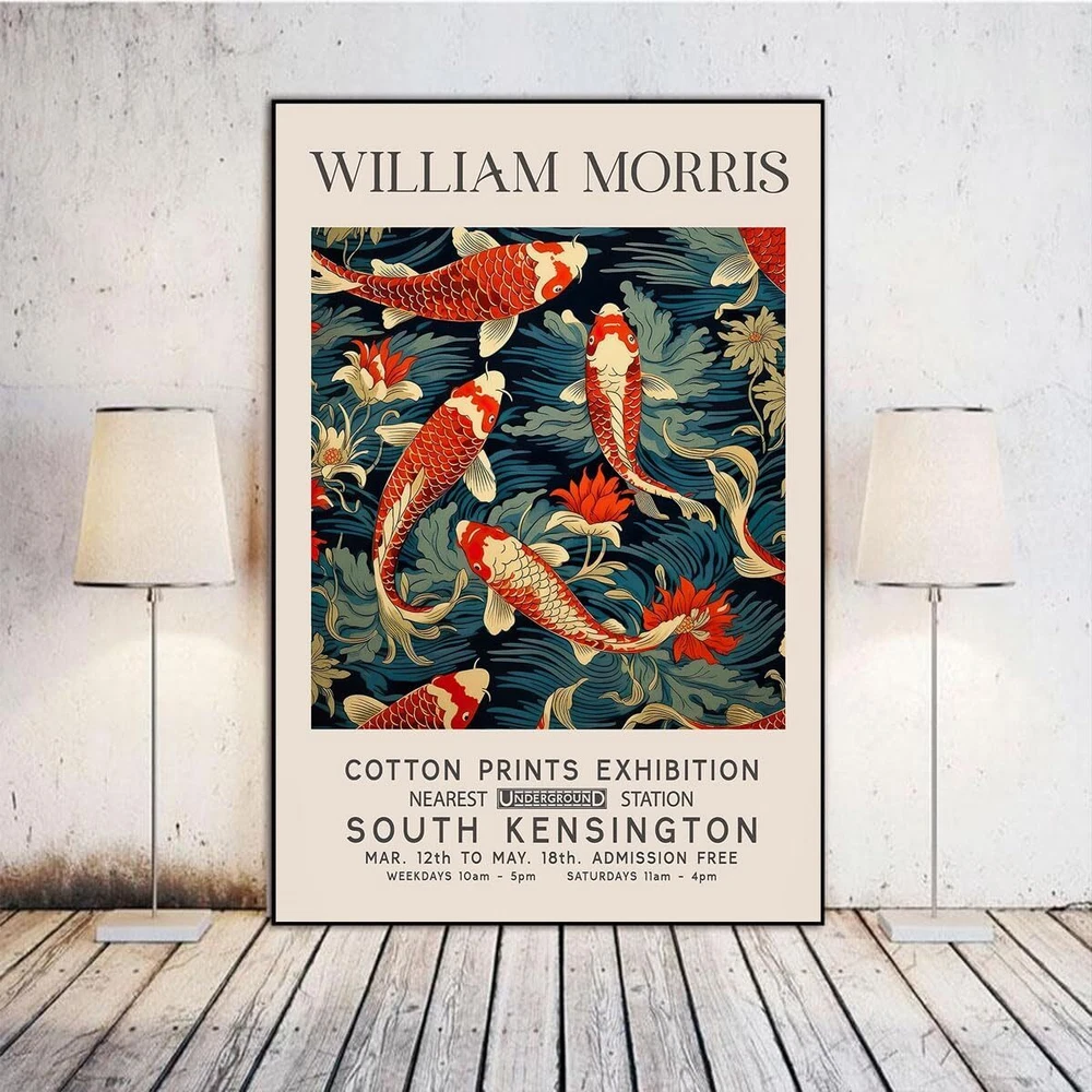 William Morris Poster Vintage Wall Art Textiles Art Vintage Poster Koi Fish