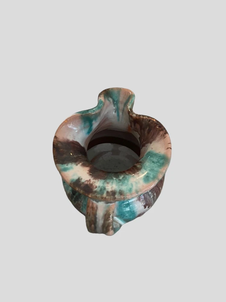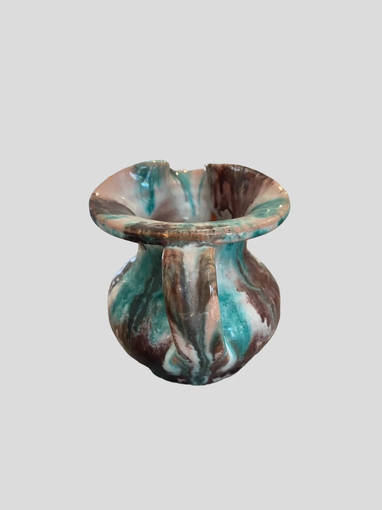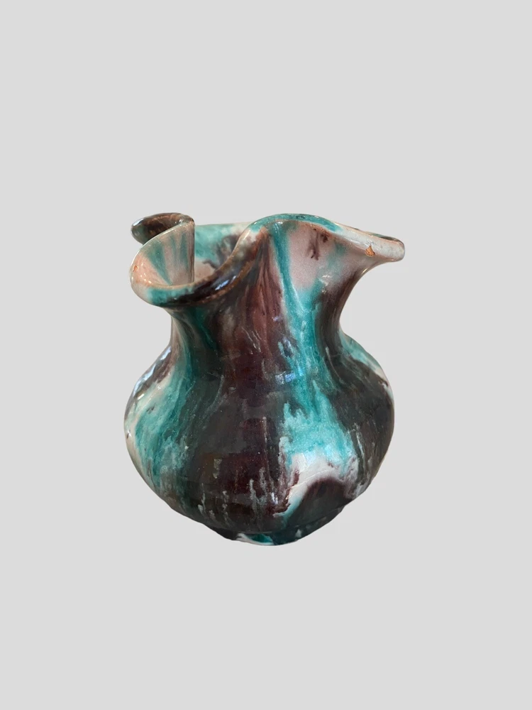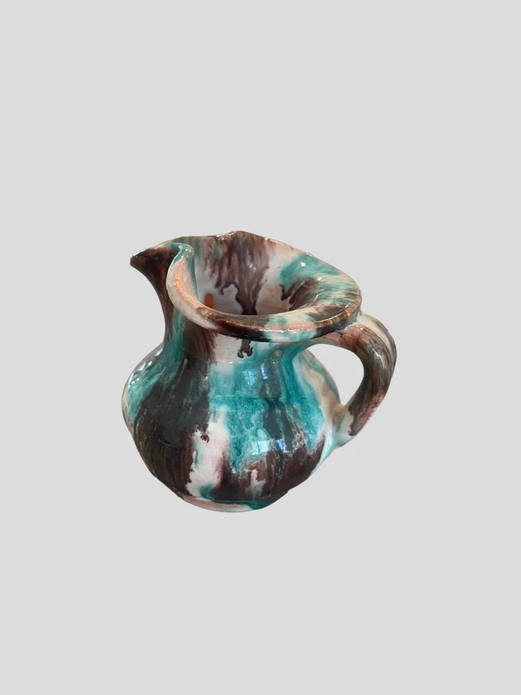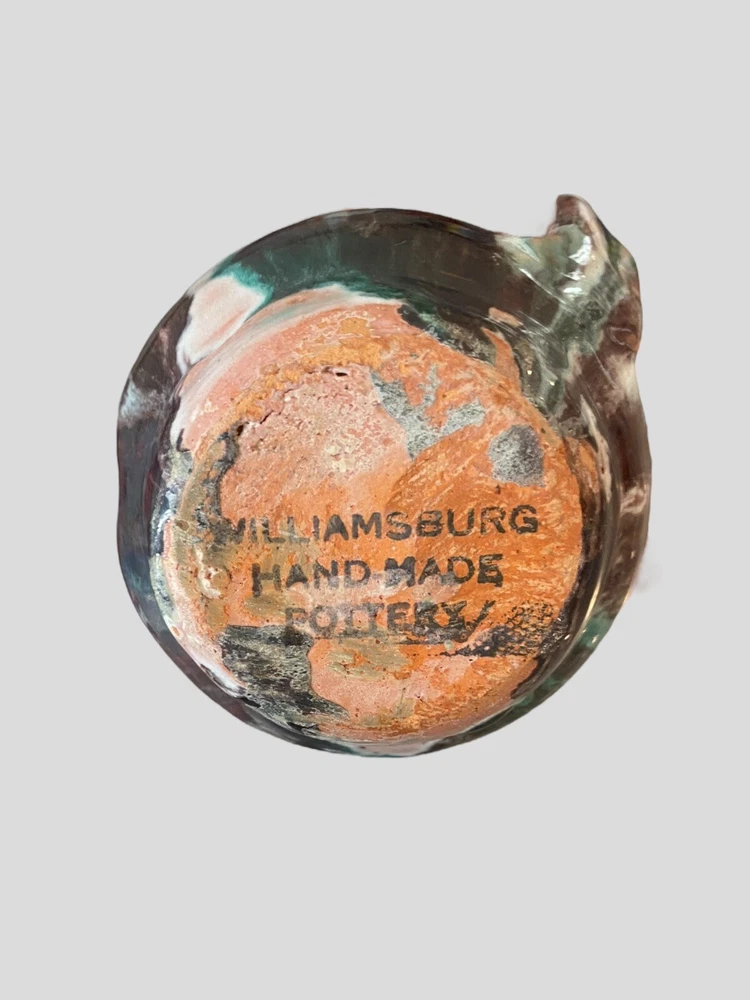 This beautiful Williamsburg handmade pottery mini pitcher is a must-have for collectors of unique and vintage art pieces. With a blue, brown, and white color combination, this 2 oz pitcher features an impressive salt glaze finish that adds extra character and beauty to its colonial style. Crafted from clay in North Carolina, this original piece is perfect for those who appreciate art pottery and want to add a touch of history to their collection. The pitcher bears an impressed backstamp and belongs to the famous Old Williamsburg product line. Don't miss out on this opportunity to add a rare and exquisite piece to your collection.
