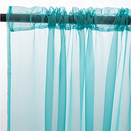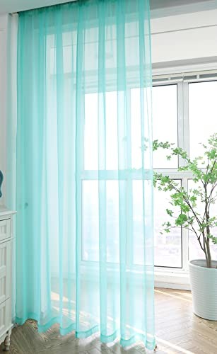 Window Lake Blue Sheer Voile Curtains 90 Inch Length 2 Panels Light Filtering