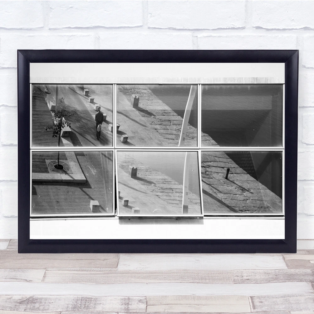 Window Street Reflection black and white Man Walk Walking Open Wall Art Print