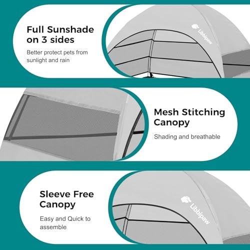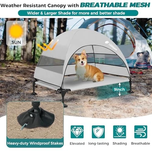 30 Days Return Policy Fast Delivery Trusted seller Windproof Elevated Dog Bed with Canopy & Stakes, 3-Sided 90% UV Block, Chew-Proof Teslin Mesh Mat for Large Dogs up to 150lbs(Grey Large) Product Description 90% UV Block & 3-Side Airflow: Our rugged polyester canopy blocks 90% of harsh UV rays to protect your pup's skin, while 3 mesh windows boost airflow for breezy naps by the pool or beach. No more sweaty panting or sunburn scares Rock-Solid in Winds: Built tough for sandy beaches and bumpy campsites! Fiberglass poles + galvanized steel legs lock into place with 4 ground stakes. Keep your big dog secure on uneven terrain while you kick back worry-free 3X Quick-Dry & Scratch-Proof Mat: High-density Teslin mesh laughs at muddy paws and sharp claws—just hose off grime after rainy hikes! Dries 3X faster than basic mats, stays cool under hot sun, and won't fray 5-Min Tool-Free Setup: Assemble faster than pitching a tent! Snap the fiberglass poles, clip the canopy, anchor the stakes, and boom—done Heavy-Duty 110lbs Support: No wobble for giants! Galvanized steel legs+fiberglass frame hold German Shepherds & Goldens (up to 110lbs!) with ease Shipping Returns Payment Shipping Shipping is FREE to all addresses other than APO/PO boxes in the lower 48 states. All our stock ships from US-based warehouses. Shipped via USPS or UPS (depending on location and package weight) Unless stated otherwise, all orders will ship within 24-72 hours of your payment being processed. Check our feedback to see the great reviews of FAST shipping we offer. Returns As our valued customer, we will do our best to make sure the product you receive arrives to you on time and as expected. If you are not satisfied with your purchase, please contact us within 30 days of receiving your order to process a return. Payment We currently accept payment via eBay managed payments only. Once payment is cleared, we will dispatch your shipment within 1-3 business days. Please refer to the "Shipping" tab for more information regarding shipping speed to your destination.