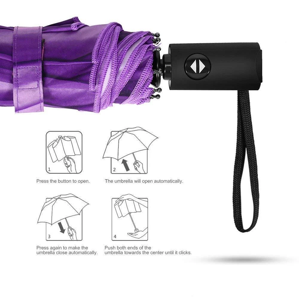 ☂【Perfect Travel Size】: Measures 46.4in in (103 cm) in diameter when open, and is large enough to shelter both you and your loved one from the downpour. Measures 12.6 in (32 cm) long when folded and can easily fit in your bag. ☂【Automatic Switch】: Automatic mechanism works smoothly. One hand operation, very easy when you get in or out of the car with an armload of groceries ☂【High Quality】: Strong aluminum center pole and durable ribs withstand high winds and prevent the umbrella from flipping inside out. ☂【Windproof Design】: 8 Reinforced fiberglass ribs with sturdy all metal frame and shaft make the canopy highly wind resistant for storms and the harsh outdoors. Our folding umbrella is compact, light weight, stylish and durable for the best quality weather service. ☂【Ideal Gifts】: Our portable folding umbrella with a nice package,this adorable umbrella will surely cheer you up in any dismal weather. So order now, one for you and one for your best friend.