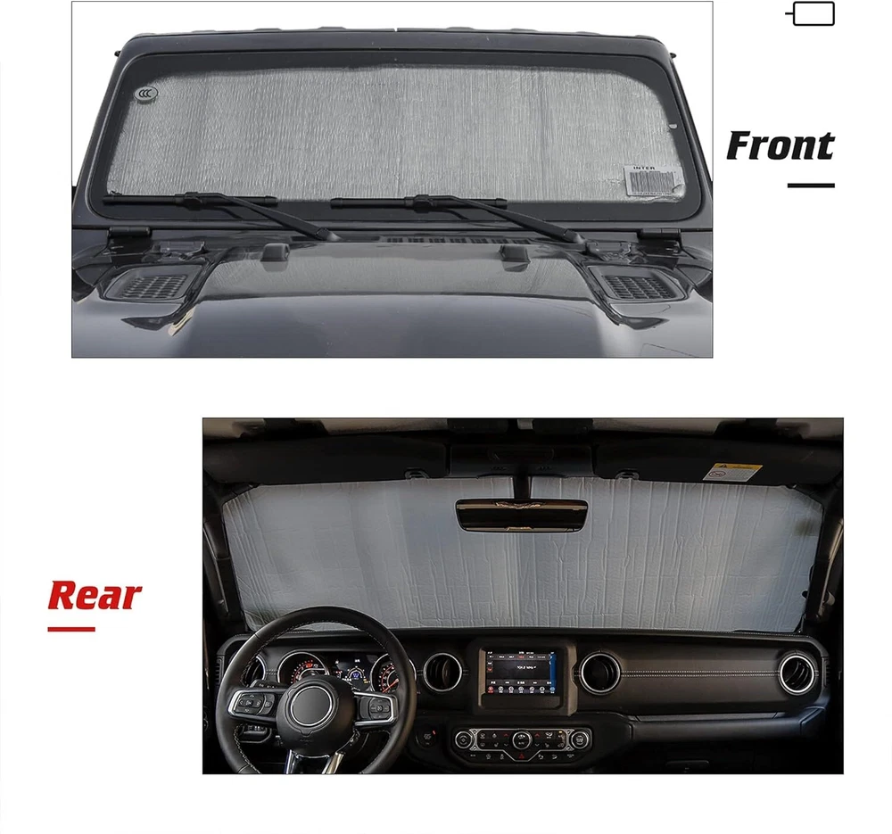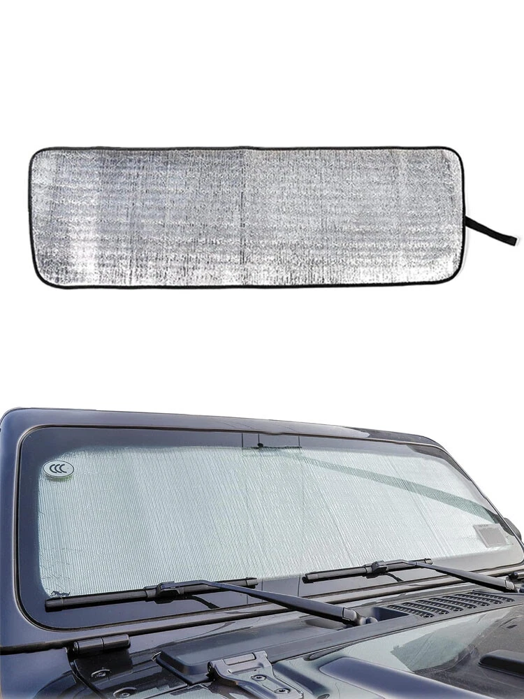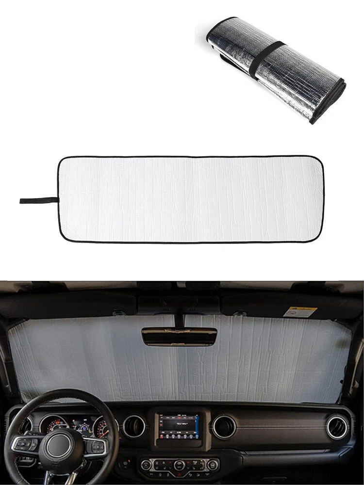 Installation and introduction: JL JT Window Shade - Windshield Sun Shade fits for 2018+ Jeep Wrangler Sport Sahara Rubicon JL JLU 2 Door & 4 Door (NOT for JK) and also fits for 2020+ Jeep Gladiator JT Truck. JeCar for jeep sunshade measure 54" x 17.3". Please check your windshield size to ensure the size fits. Premium Material - JeCar for Jeep windshield sunshade is made of double-sided aluminum foil with good reflection effect, air bubble film is used as the inter layer. No peculiar smell and non-toxic, JeCar for jeep jl sunshade will not cause damage to pets or human body. Keep Out UV Rays - Reflective material deflects sunlight and heat. JeCar for jeep jl shade blocks the harmful UV rays, and protects yourself and family avoid sunrays and UV direct Irradiation. JeCar for jeep wrangler sunshade reduces the temperature inside of vehicle before driving. Creating the most comfortable and cool car environment. Protect Jeep From Sun Damage - JeCar for Jeep windshield shade prevents over heat penetration causing damage to steering wheel, windshield dashboard, interior and your car seat; JL sun shade keeps jeep in all solid protection. Jeep window shade maintains pristine Interior without fading or cracking. Easy to Storage & Install - JL windshield sunshade is convenient to carry and store. Flexible straps keep sunshade folded while being stored. No tools required and no need for any modifications, just unroll the jlu sun shade, then put it under your windshield and it will keep in place. Very easy installation & removal. Description: Fit for: For Jeep Wrangler JL 2018+&Gladiator 2020+ Color: sliver Material: High-Quality ABS Package Include: 1pcs 100% Brand New with High Quality Provide a highly class and fashional style for your car Notice: Please check if the parts of your car are the same as our pictures. Due to light and screen difference, the item's color may be slightly different from the pictures. If have any question please contact us, thanks! Payment Delivery details Terms of sales About us Contact us Payment Payment is due at the time of purchase. Delivery details We ship to your eBay address. Please make sure your eBay address is correct before you pay. Terms of sales Buyer is responsible for return shipping cost of ALL exchange/refund cases. We will cover shipping cost when sending out replacement. About us We only provid high quality product to car owners.Our team has experience about car accessories sale over ten years. Contact us Should you have any question regarding our item, please feel free to send us an eBay message.