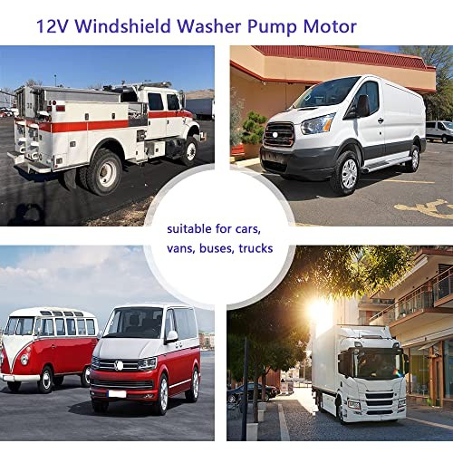 Windshield Washer Pump 12V Compatible with Car Van Bus Truck w/ Grommet Windshield Washer Pump 12V Compatible with Car Van Bus Truck w/ Grommet 【Quick Cleaning】The windshield cleaning pump motor can be used to clean and clean the windshield quickly and effectively. A steady pressure is created to extract the windshield washer fluid from the reservoir. 【Double Outlet Design】The universal cleaning pump adopts a double outlet design, the cleaning liquid will be sprayed smoothly through the pump port, which can be easier and more effective to light clean the window, it is a direct replacement for old or damaged. 【Widely Applicable】Window cleaning pump motor accessories are suitable for cars, vans, buses, trucks, powerful liquid jets can make the front rear window clearer, easy to install and use. 【Excellent Material】Made of excellent plastic material, it can be used for a long time, wear-resistant and not easy to deform. 2-pin high-performance pump connector for better, more frequent water sprays. 【Satisfied Service】We care for all customer's feelings. If you have any detailed information or questions about this item, you can contact us at any time, and we will give you a satisfactory answer.