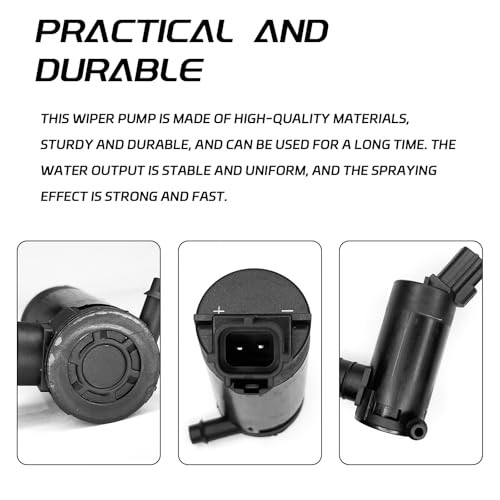 Windshield Washer Pump Replacement for Ford Escape with Grommet OEM#89017059 Windshield Washer Pump Replacement for Ford Escape with Grommet OEM#89017059 This windshield washer fluid pump is designed for many models of Ford, Lincoln, Mazda, and Mercury, including Ford Crown Victoria (2001 - 2011), Lincoln City (1999 - 2007), Mazda Tribute (2001 - 2006), Mercury Grand Marquis (2000 - 2011), etc. It fits perfectly and is easy to install. This Front Windshield Washer Pump can efficiently draw windshield washer fluid from the reservoir, quickly push the washer fluid through the nozzle, and accurately spray it onto the windshield, powerfully washing away dust, mud stains, and other dirt, giving you a clear view. Our windshield washer pump is made of high-quality materials and has a sturdy structural design to ensure stable and uniform water output, a strong and fast water spraying effect, and can withstand long-term and frequent use. It will accompany your vehicle for many years, reducing the frequency of replacement, so that you don’t have to worry about washer pump failure frequently. You will get 1 12V washer pump and 1 rubber gasket when you purchase it. The accessories are complete and meet the installation requirements. It is compatible with OEM part numbers 27R33-17664-DA, 7L8Z-17664-A, F6SZ-17664-A, WG-315, F6SZ-17664-BA, F6SU17664DA, F7C617664AB, 8C3417664AA. It can replace multiple original factory numbers such as OEM numbers 89017059, 173686, etc. It meets the OEM standards of the original wiper pump and is an ideal wiper pump replacement part! Under the premise of ensuring quality, we provide you with cost-effective vehicle maintenance solutions.