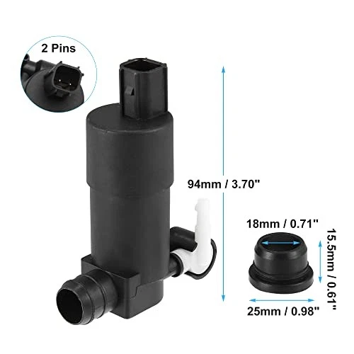 Windshield Washer Pump Replacement for Ford Focus Black Windshield Washer Pump Replacement for Ford Focus Black Fit for Ford Focus 2012-2014 (Hatchback only). OE Number BV61-17K624-BA. To replace your Windshield Washer Pump if it’s broken, cracked, clogged beyond repair, or won’t stay aimed correctly. Easy Installation - Direct replacement, no need to make any changes, match your old one. Package Includes: 1 pcs Windshield Washer Pump, 1 pcs Rubber Grommet.