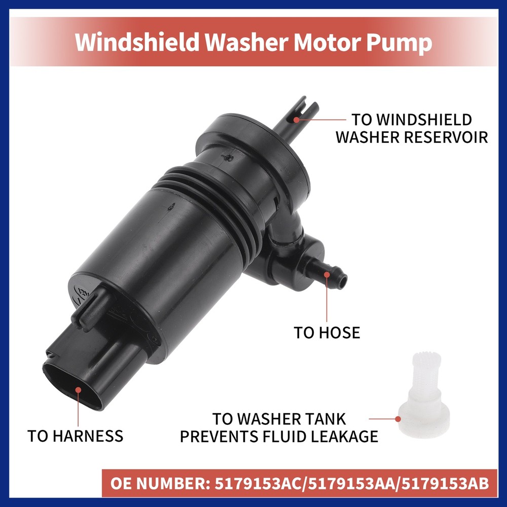 Document Features:Washer Fluid Pump can quickly and effectively wash away the dirt on the windshield. Provide a clear driving view.When Need To Replace Washer Pump: If your windshield washers don't spray or uneven spraying, washer fluid reservoir leaks, the weakening of the water pressure and so on, you may need to replace the windshield washer fluid pump and grommetThe windshield cleaning fluid pump is made of plastic material. Durable, can provide you stable and efficient water spraying effectt and with a rubber grommet, have good sealing, which can prevent leaks of cleaning fluid.This is non-OEM product, accessory ONLY!OE Number:5179153AC/5179153AA/5179153ABSpecification:Color: Black, WhiteMaterial: PlasticPin Number: 2 PinsType: Washer PumpFit for:for Jeep Grand Cherokee 2007-2021for Dodge Durango 2007-2009 2011-2022for Jeep Grand Cherokee WK 2022for Dodge Grand Caravan 2008-2020for Dodge Journey 2009-2020for Jeep Wrangler JK 2018for Jeep Compass 2007-2017for Jeep Wrangler 2007-2017for Jeep Patriot 2007-2017for Chrysler Town & Country 2008-2016for Ram C/V 2012-2015for Jeep Commander 2007-2010for Dodge Nitro 2007-2011for Jeep Liberty 2006-2012for Chrysler Aspen 2007-2009for Dodge Caliber 2007-2012Installation:Take the wheel offUnplug the old washing pumpReplace the rubber gasketInsert the new washing pump into the storage tank with the same hosesPackage Includes:1 Pc Windshield Washer Pump with Grommet Windshield Washer Pump w/Grommet Washer Fluid Pump for Jeep Liberty Features: Washer Fluid Pump can quickly and effectively wash away the dirt on the windshield. Provide a clear driving view. When Need To Replace Washer Pump: If your windshield washers don't spray or uneven spraying, washer fluid reservoir leaks, the weakening of the water pressure and so on, you may need to replace the windshield washer fluid pump and grommet The windshield cleaning fluid pump is made of plastic material. Durable, can provide you stable and efficient water spraying effectt and with a rubber grommet, have good sealing, which can prevent leaks of cleaning fluid. This is non-OEM product, accessory ONLY! OE Number: 5179153AC/5179153AA/5179153AB Specification: Color: Black, White Material: Plastic Pin Number: 2 Pins Type: Washer Pump Fit for: for Jeep Grand Cherokee 2007-2021 for Dodge Durango 2007-2009 2011-2022 for Jeep Grand Cherokee WK 2022 for Dodge Grand Caravan 2008-2020 for Dodge Journey 2009-2020 for Jeep Wrangler JK 2018 for Jeep Compass 2007-2017 for Jeep Wrangler 2007-2017 for Jeep Patriot 2007-2017 for Chrysler Town & Country 2008-2016 for Ram C/V 2012-2015 for Jeep Commander 2007-2010 for Dodge Nitro 2007-2011 for Jeep Liberty 2006-2012 for Chrysler Aspen 2007-2009 for Dodge Caliber 2007-2012 Installation: Take the wheel off Unplug the old washing pump Replace the rubber gasket Insert the new washing pump into the storage tank with the same hoses Package Includes: 1 Pc Windshield Washer Pump with Grommet ITEM SPECIFICS Brand switchpart Type Washer Pump Placement on Vehicle Front Features Easy Installation Manufacturer Part Number 5179153AC/5179153AA/5179153AB OE/OEM Part Number 5179153AC/5179153AA/5179153AB Material Plastic Items Included Rubber Grommet Attachment Type Insert Product Name Windshield Washer Pumps Net Weight 113g Shell Color Black,White Other Part Number 5179153AC/5179153AA/5179153AB Package Content 1 pcs Windshield Washer Pump with Grommet Note This is not oem product,accessory only. NOTICE If you have any questions, please feel free to contact our customer service. Our response will be faster than eBay! Our Handling Time: within 24 hours on weekdays eBay Handling Time: 72 hours ABOUT US SHIPPING POLICY PAYMENT RETURN CONTACT US We are committed to providing professional, safe and effective personal care products. We strive to provide customers loved products at the competitive price. We work with suppliers to discover practical, easy-to-use personal care products. Our store not only offers quality products at the competitive price, but also has professional customer service, offers you comfortable shopping experience. Please don't forget to follow us on eBay. We will continue to update and provide more and more practical personal care products. switchpart thank you for your business! We work hard to safely and securely ship your order in the least amount of time. Storewide free shipping in United States. All our items will be shipped to buyer's address, please confirm your address on eBay before you purchase. Taxes and other charges are included in the item price or shipping charges. Buyers are responsible for these charges. We accept payment methods show in payment details. Payment must be received within 7 days of auction closing. According to eBay guidelines, all unpaid purchases case will be opened automatically. If you need to specify the color or other information for the items you purchased, please Click here to contact us directly with item # and your eBay ID. We offer a 30 day return policy. This is under the following conditions: The item must be unused and in a resalable condition otherwise are not eligible for a refund. All items returned by post are returned at your expense, we cannot be held responsible for this. Please use a traceable service. Generally we answer emails within 24 hours (excluding weekends & holidays). Questions or comments? We welcome your inquiry! Please feel free to contact us directly. Description Policy Windshield Washer Pump w/Grommet Washer Fluid Pump for Jeep Liberty Features: Washer Fluid Pump can quickly and effectively wash away the dirt on the windshield. Provide a clear driving view. When Need To Replace Washer Pump: If your windshield washers don't spray or uneven spraying, washer fluid reservoir leaks, the weakening of the water pressure and so on, you may need to replace the windshield washer fluid pump and grommet The windshield cleaning fluid pump is made of plastic material. Durable, can provide you stable and efficient water s